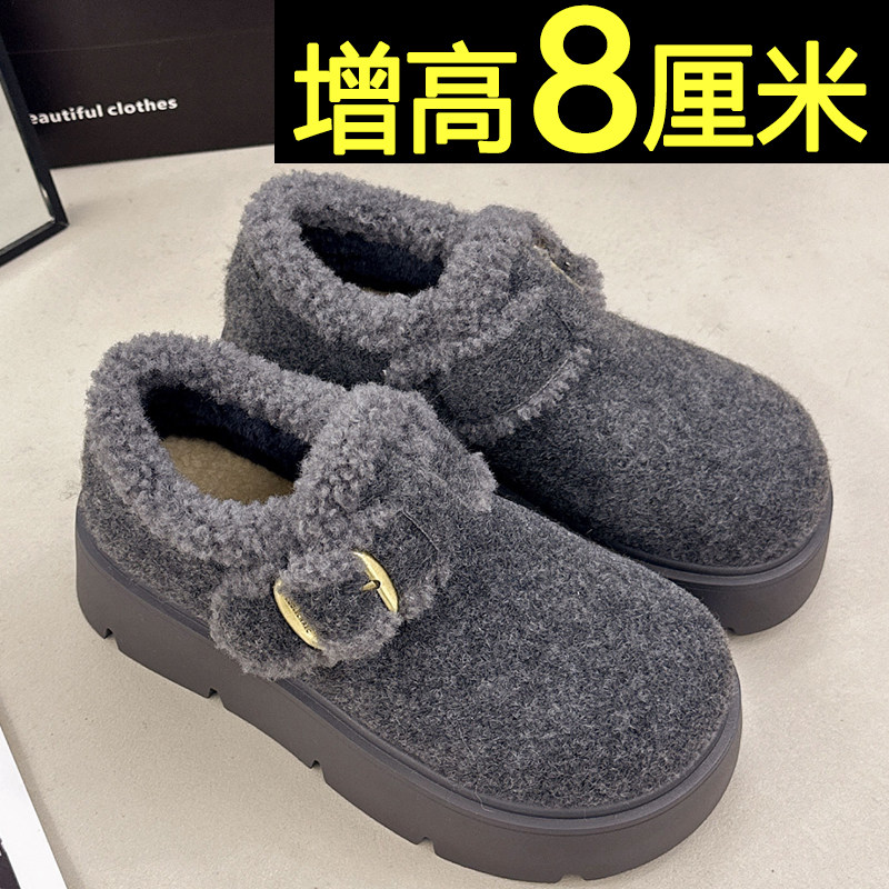 内增高雪地靴女2026新款冬季保暖厚底加绒全包勃肯鞋灰色乐福棉鞋