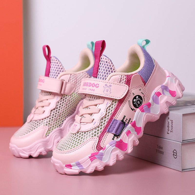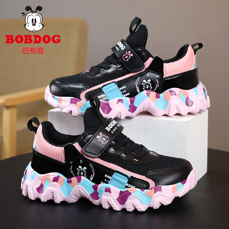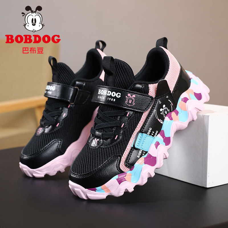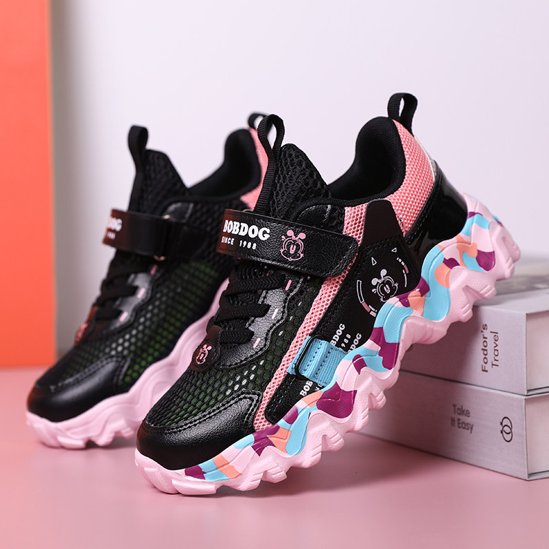 巴布豆女童运动鞋夏季新款透气网鞋儿童单网鞋中大童女孩黑色鞋子