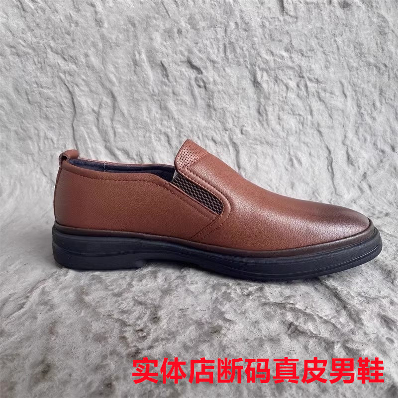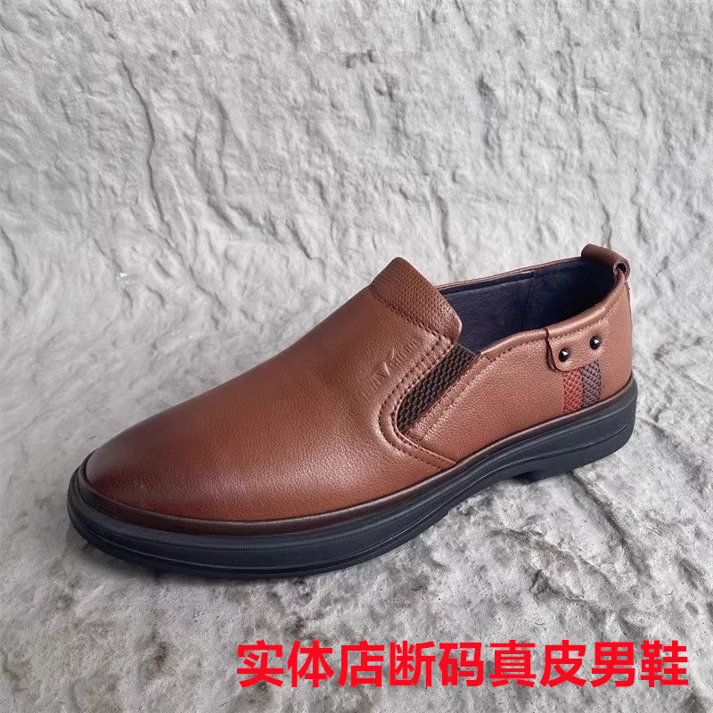 新款公牛品牌撤柜男鞋一脚蹬真皮头层牛皮休闲断码防滑透气乐福鞋