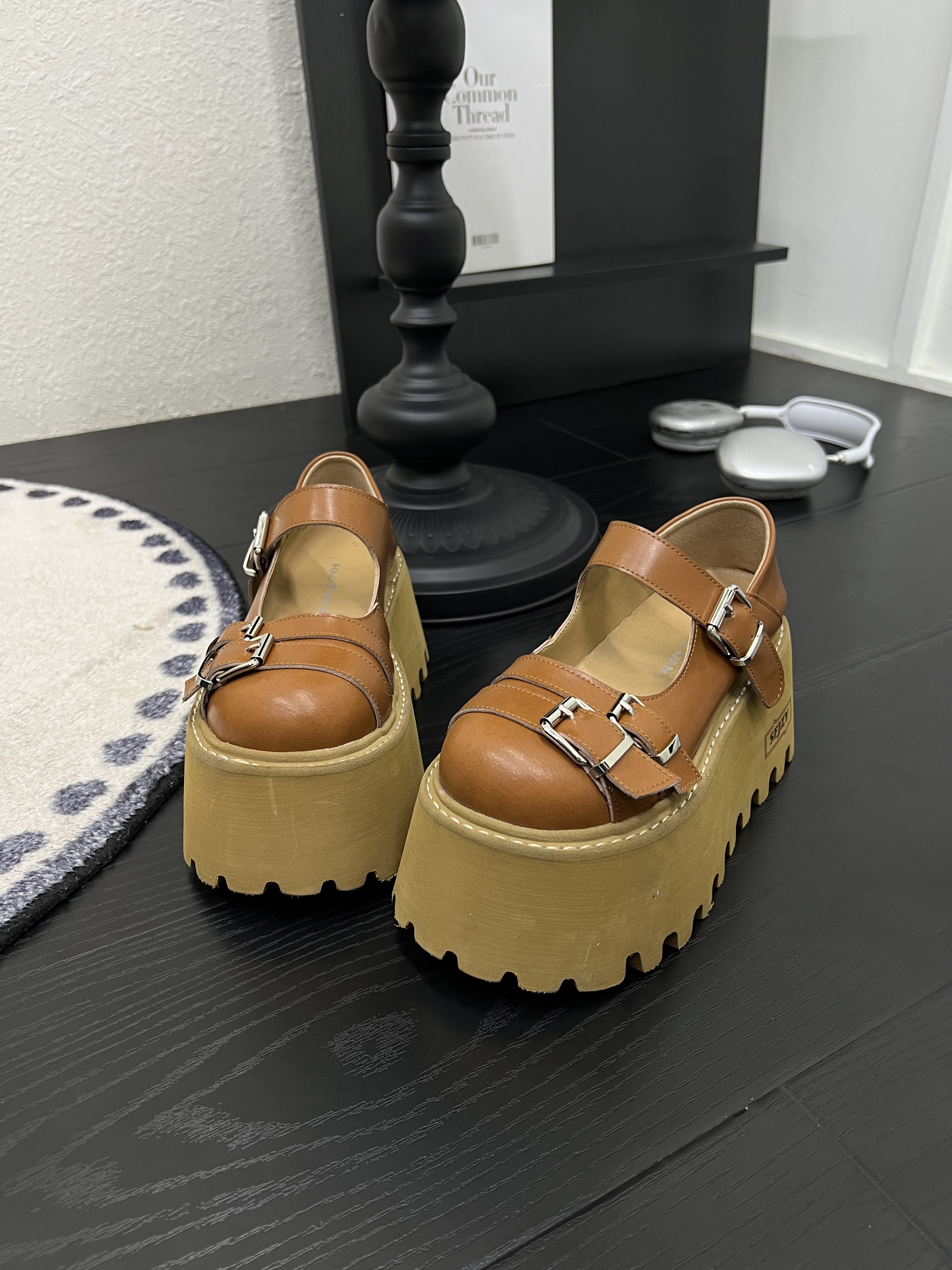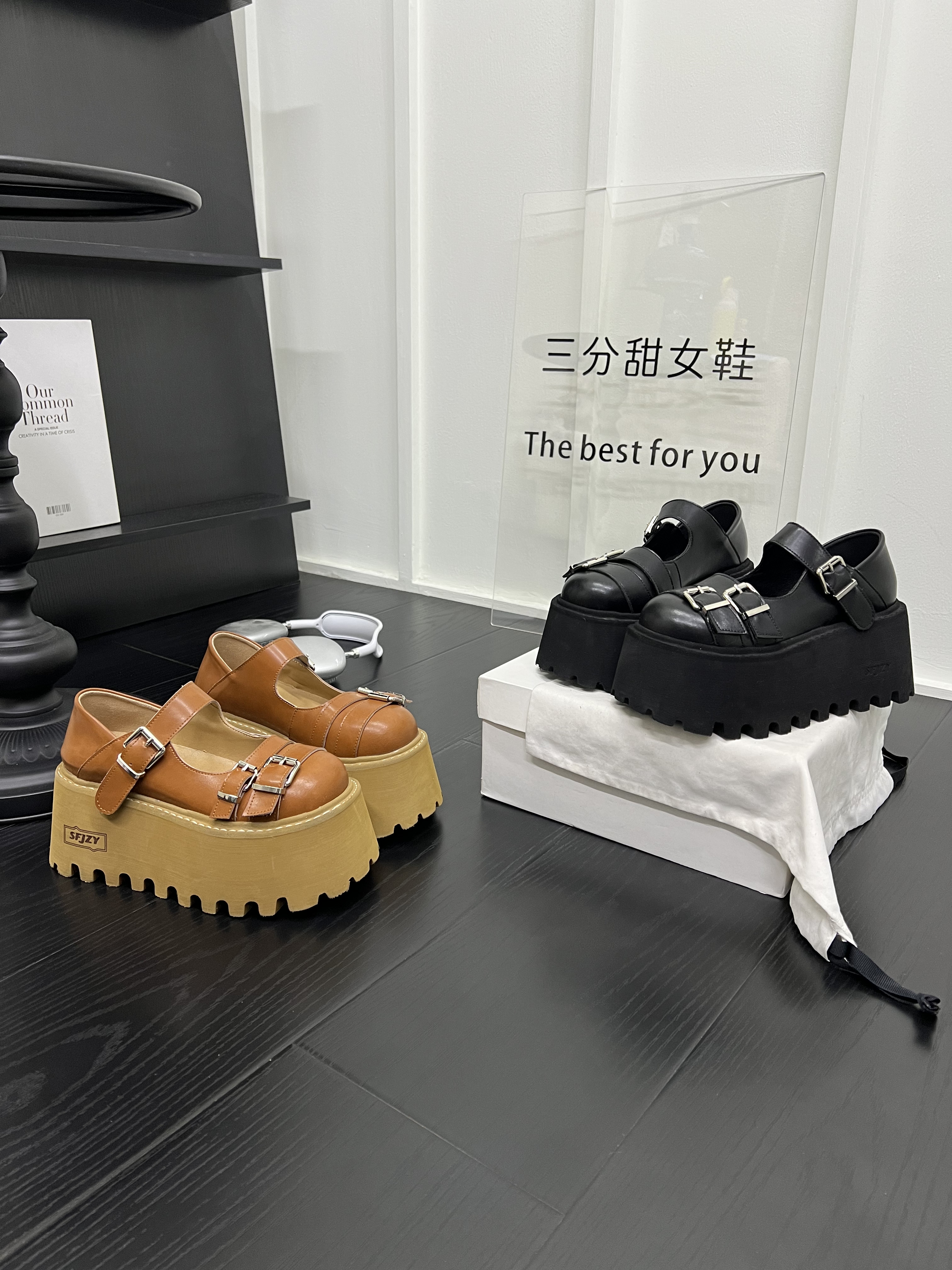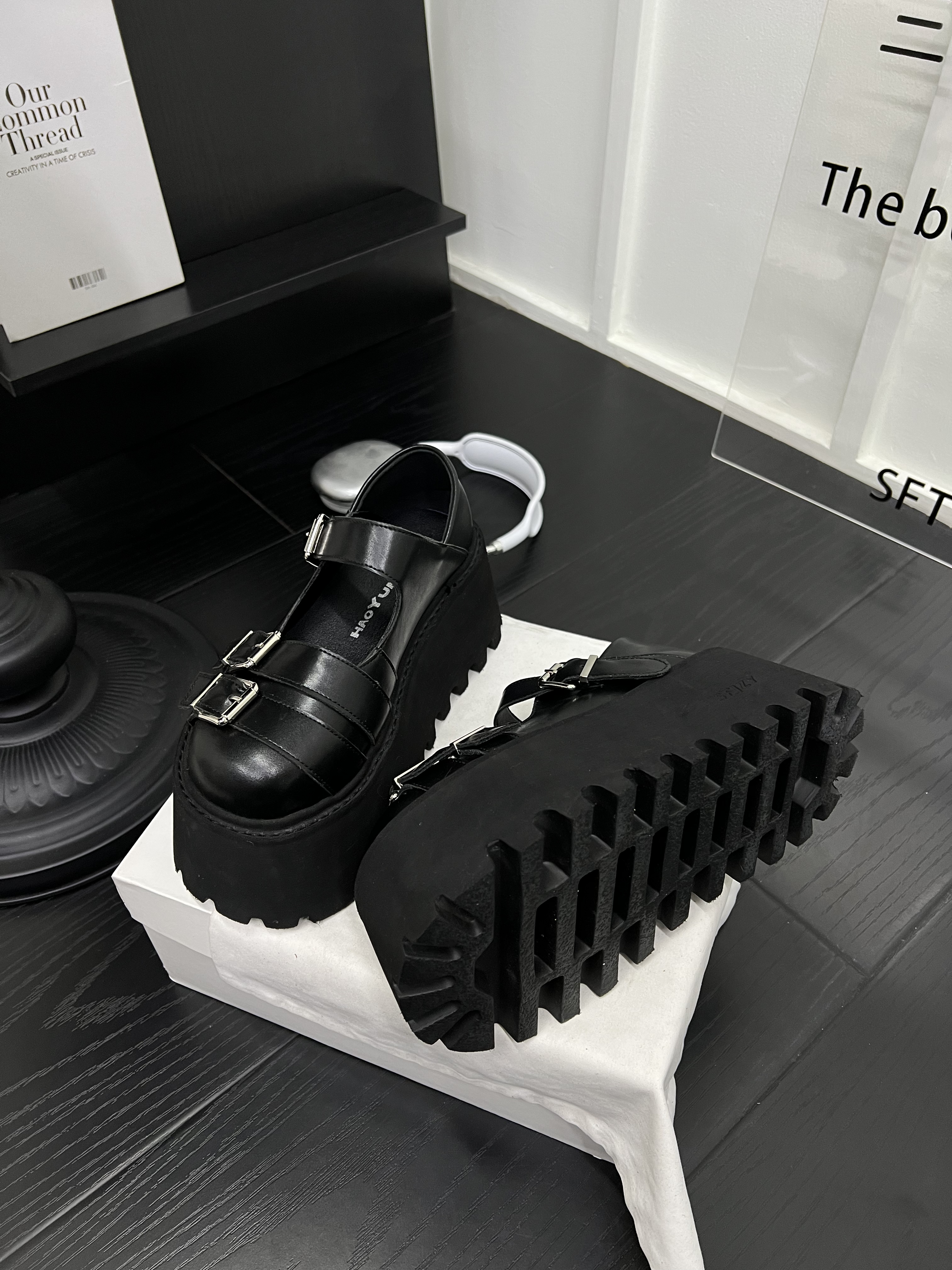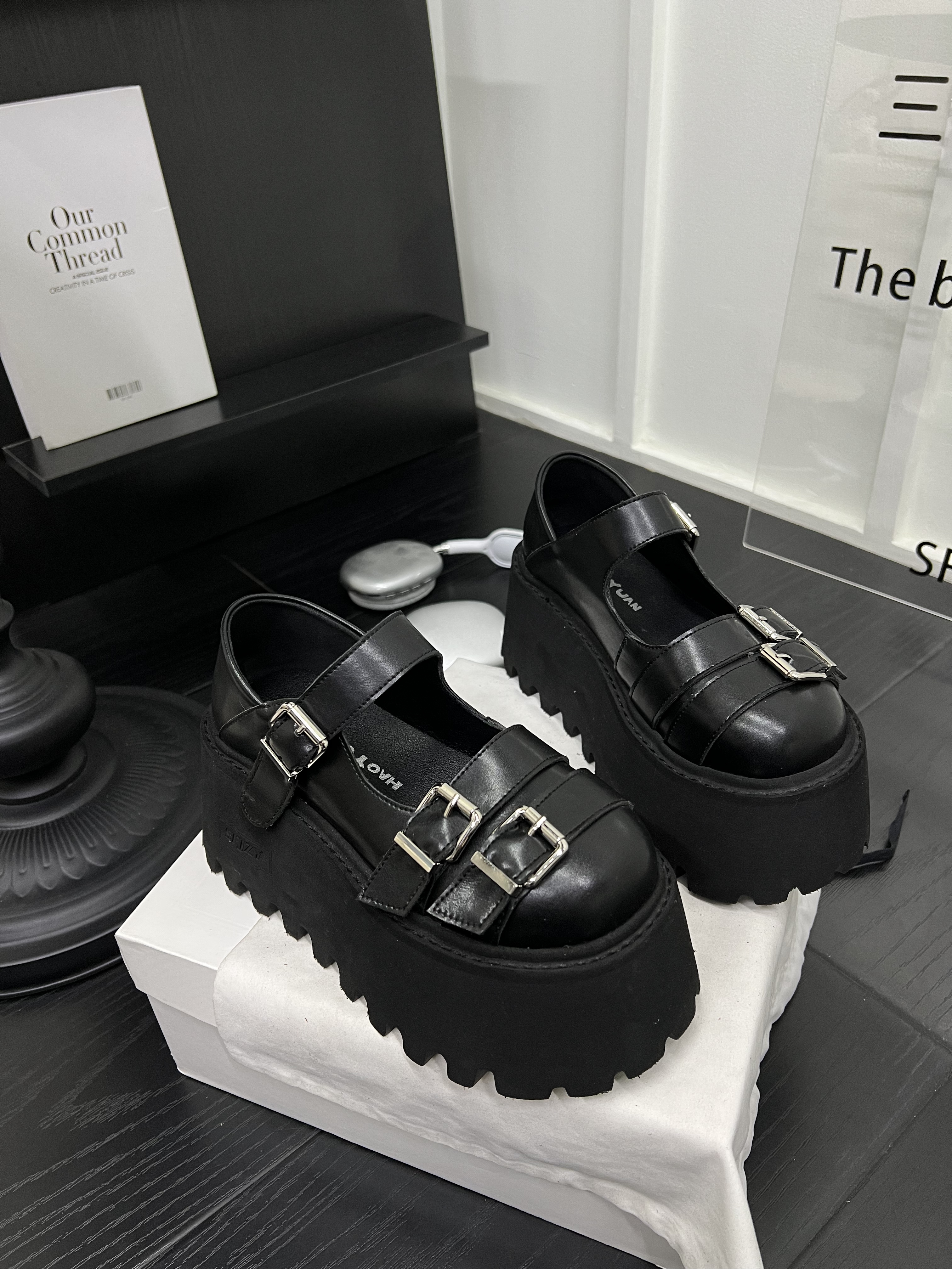 法式一字扣带小皮鞋女2026年春季新款浅口厚底增高轻便玛丽珍单鞋