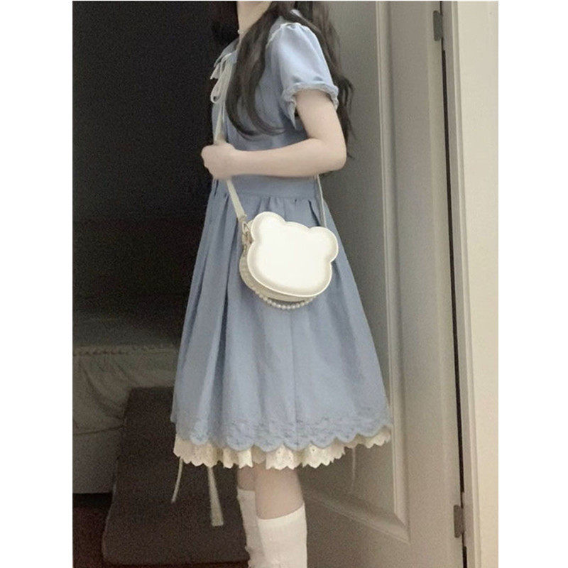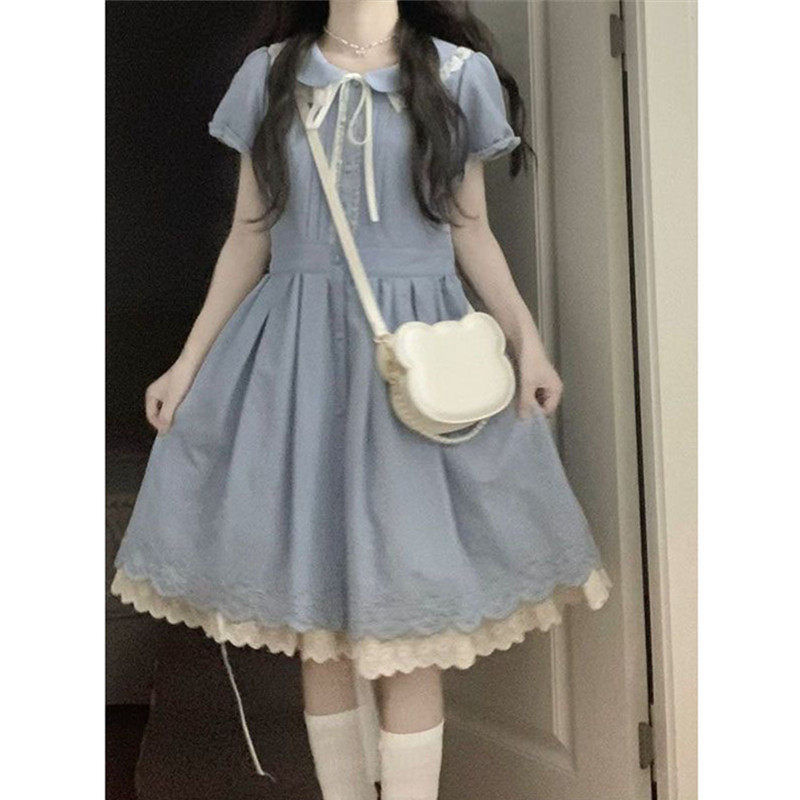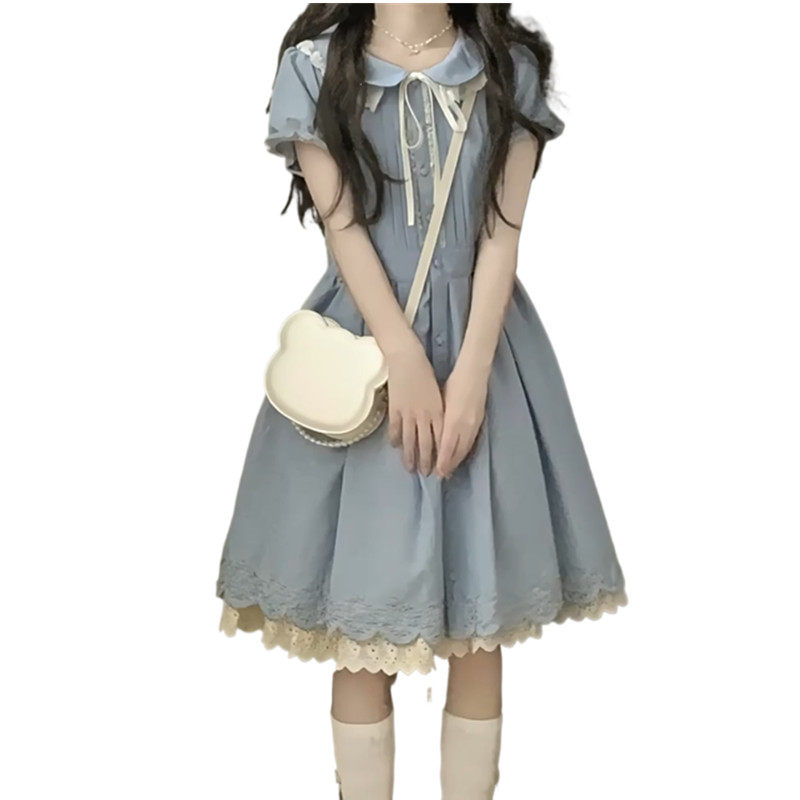 女大童娃娃领连衣裙少女甜美可爱夏装初中生学院风蕾丝花边公主裙