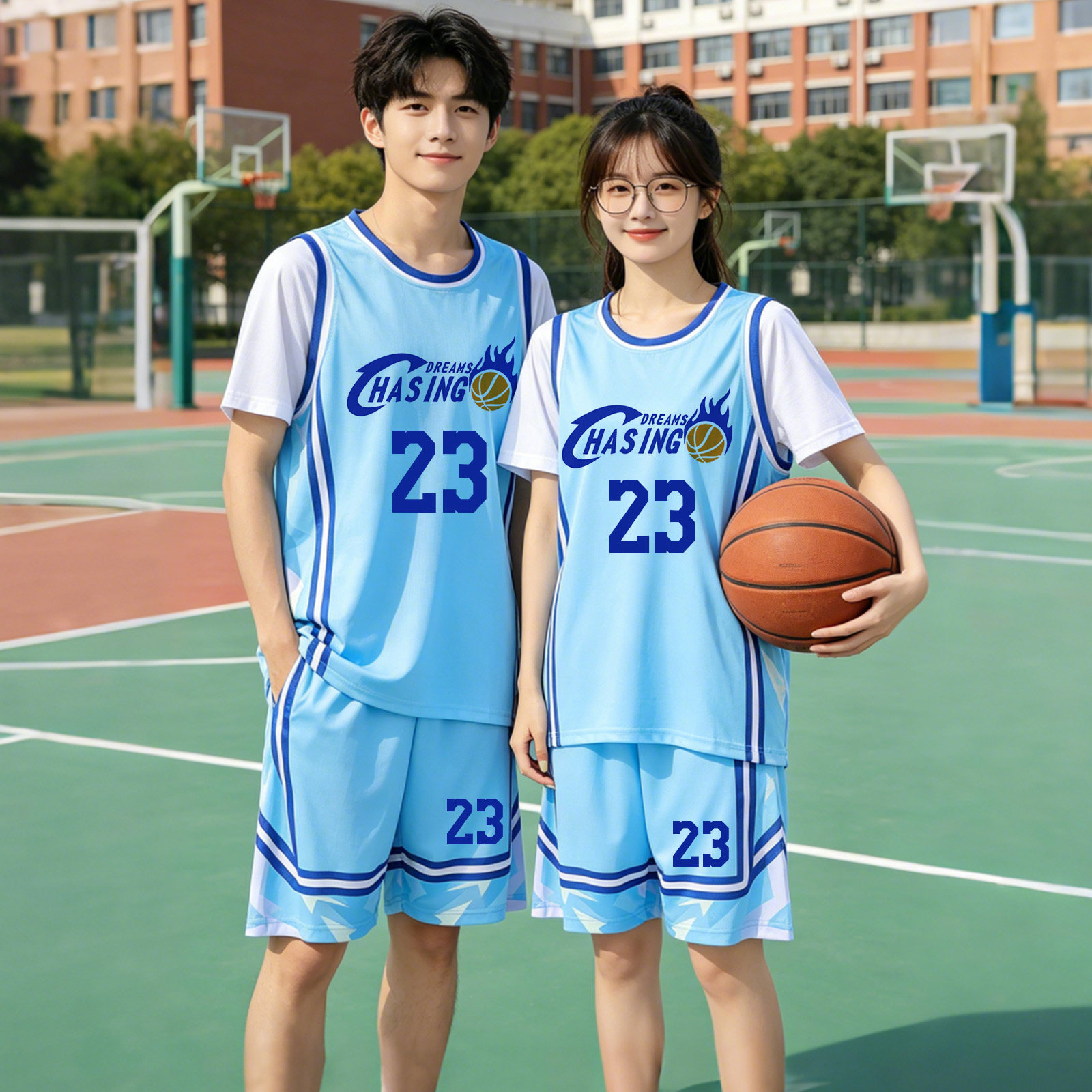 篮球服女定制大学生运动比赛球衣训练队服男高颜值假两件有袖班服