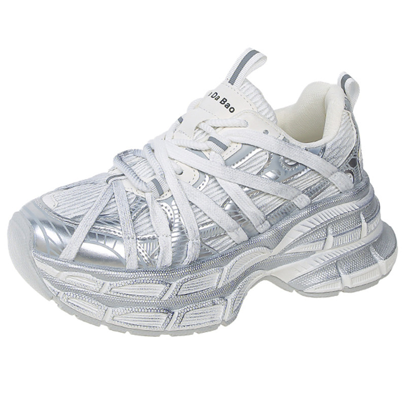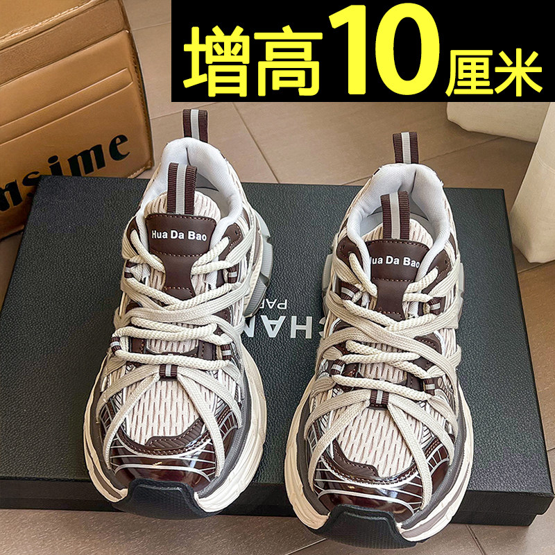 10cm内增高老爹鞋女2026新款百搭不累脚厚底银色运动鞋网面休闲鞋