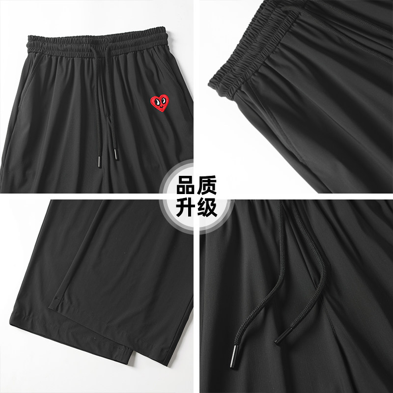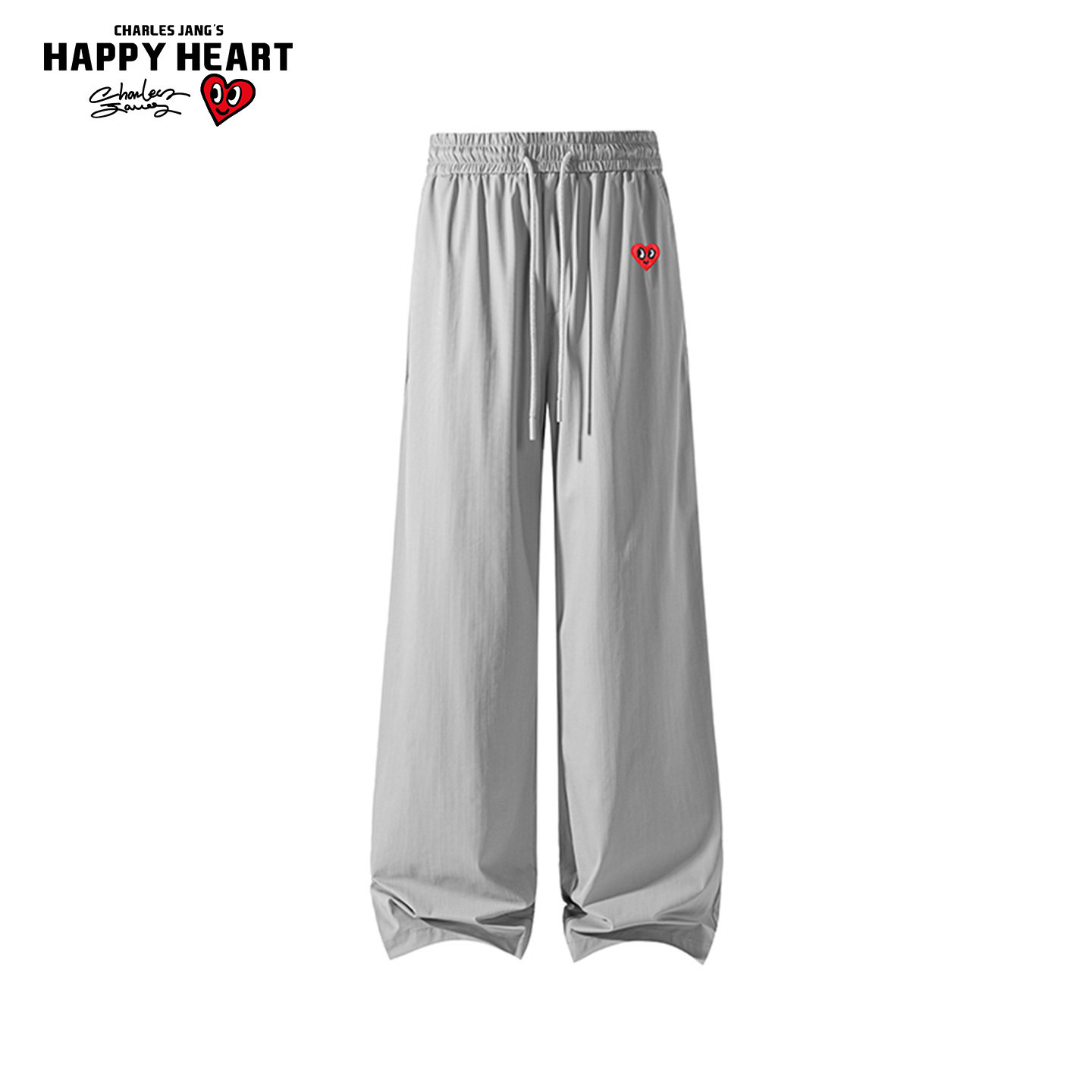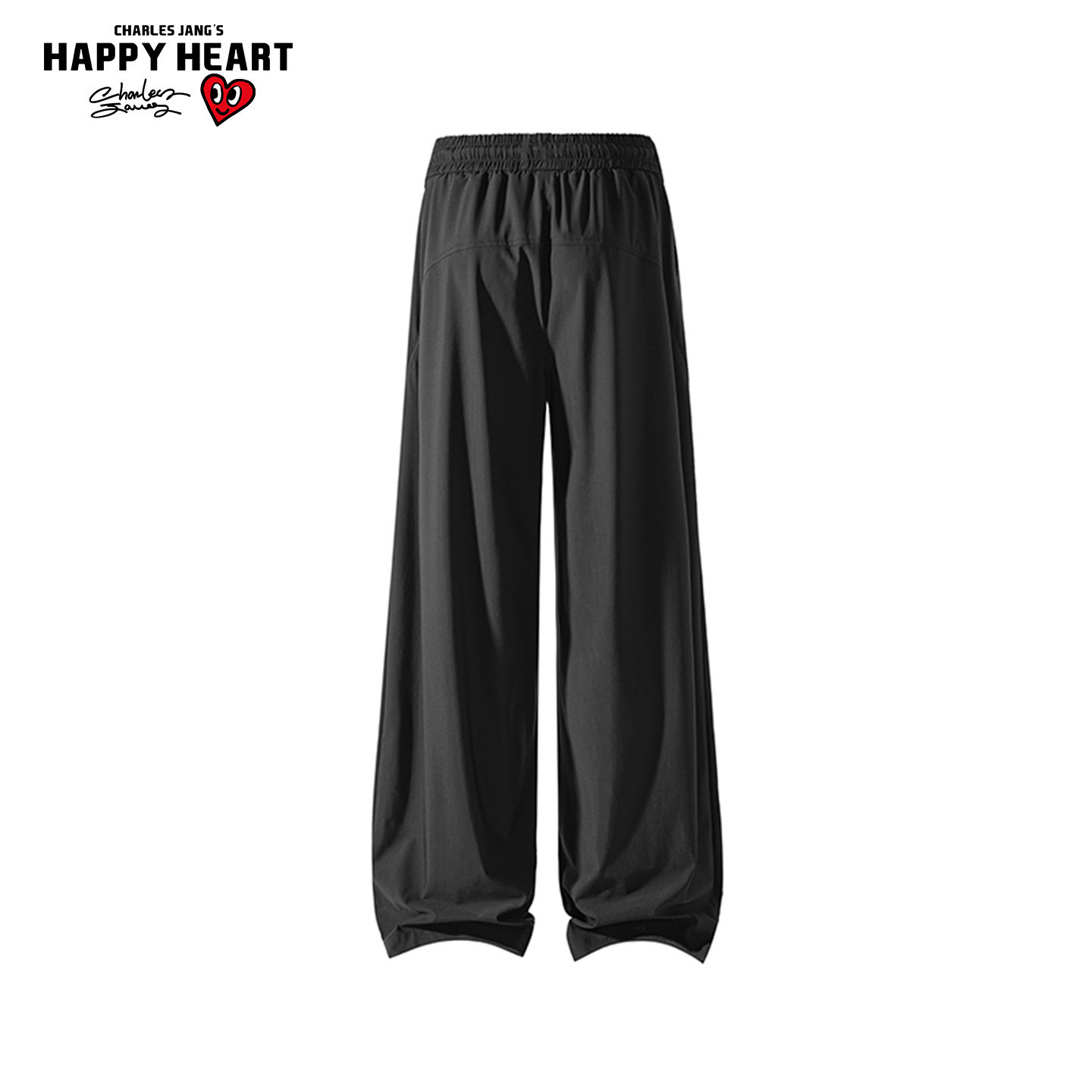 查尔斯桃心黑色宽松阔腿休闲裤男女款春夏季潮牌百搭垂感直筒裤子