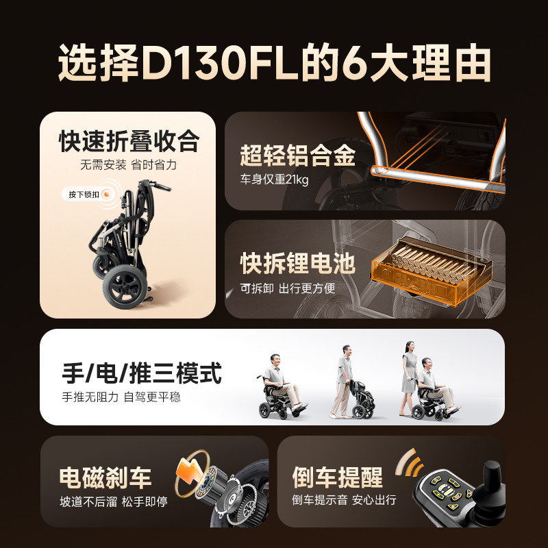 鱼跃电动轮椅车老人专用智能全自动便携折叠轻便年轻代步车D130FL