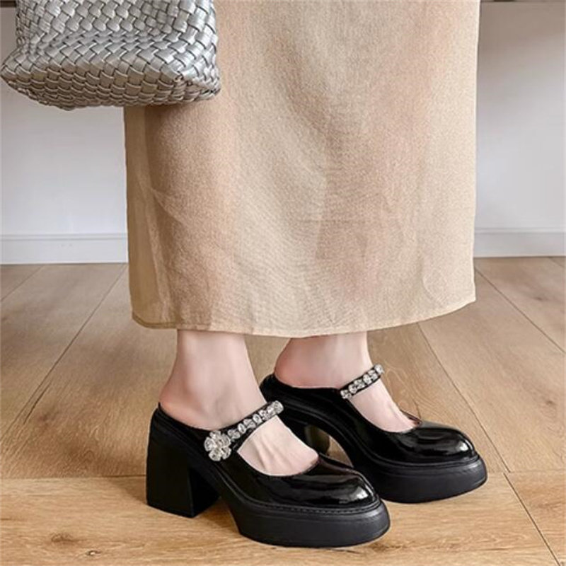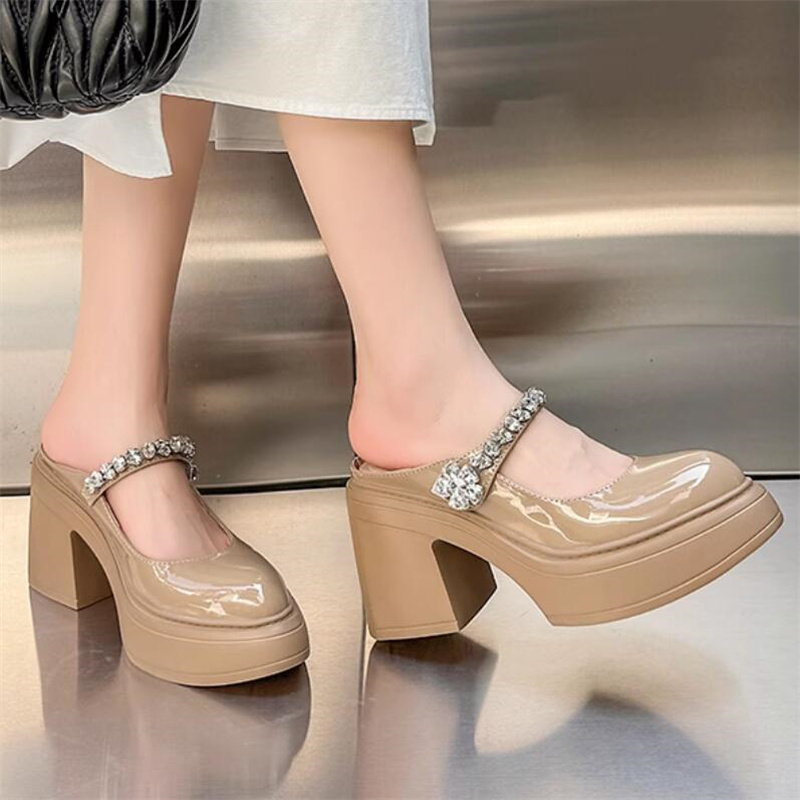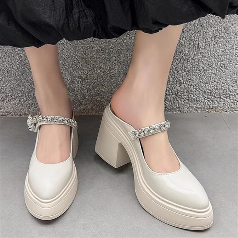2026夏季新款隐形增高10厘米真皮粗跟尖头防水台坡跟包头拖鞋A835
