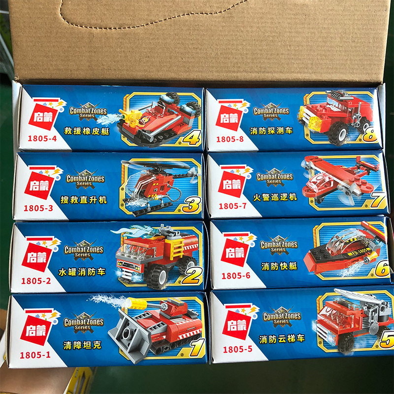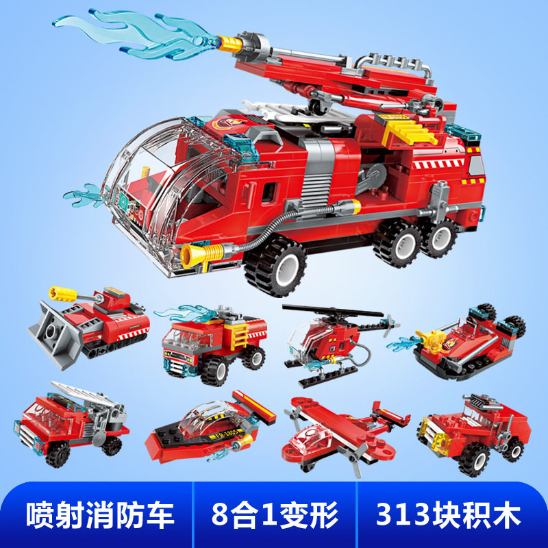 启蒙积木喷射消防车8合1套装飞机组装模型男孩拼装拼插玩具礼物