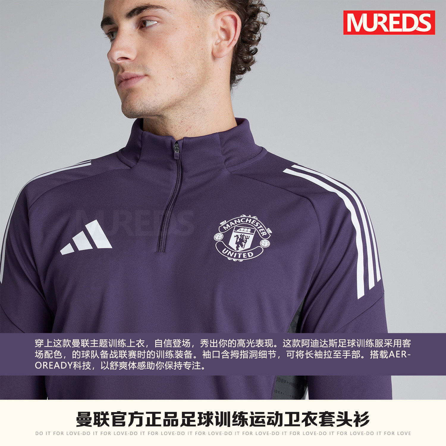 曼联官方正品阿迪达斯25/26赛季足球套头半拉链长袖训练服JP3124