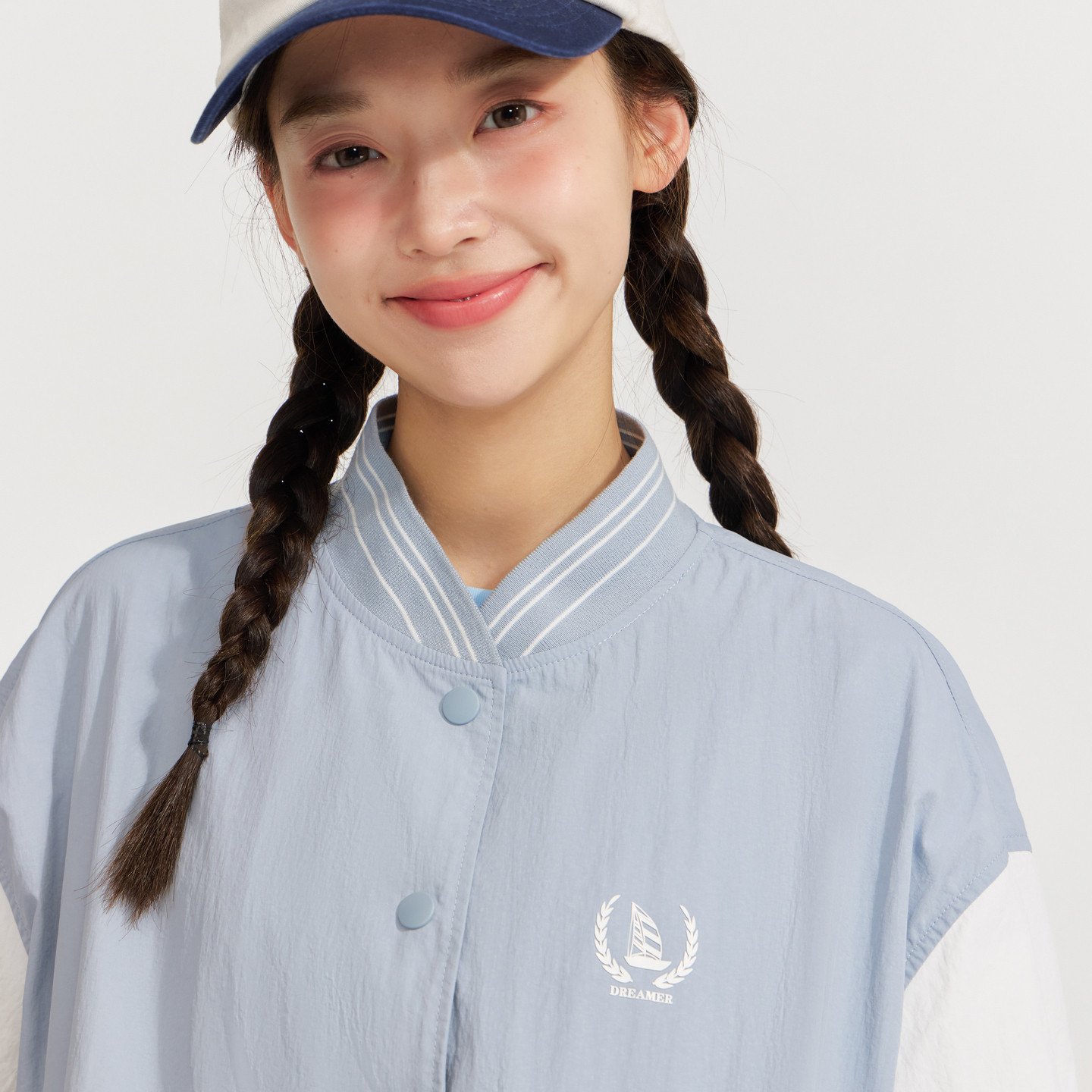 笛莎2026新款青少年初中生撞色凉感防晒衣夏季薄款梭织棒球外套女