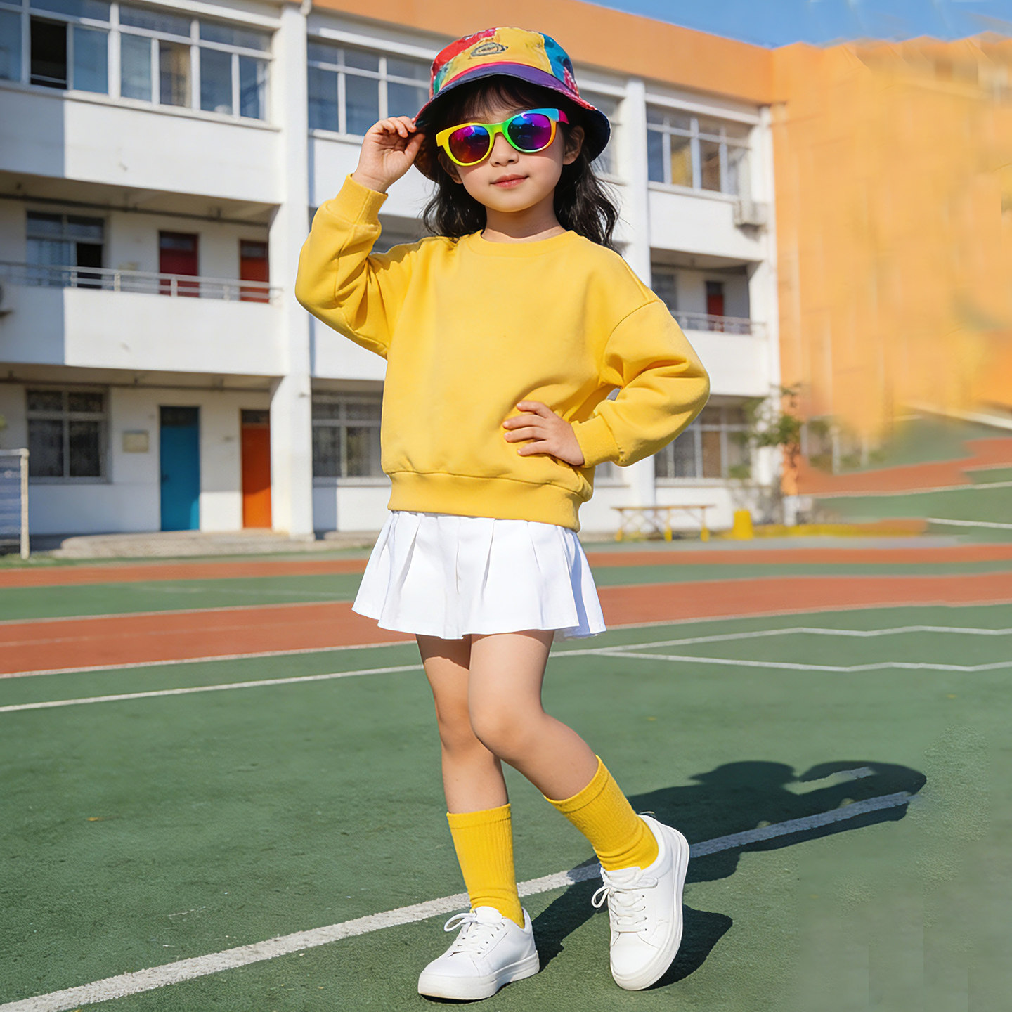 多巴胺卫衣白色裙子女童春季套装小学生幼儿园儿童长袖舞蹈演出服
