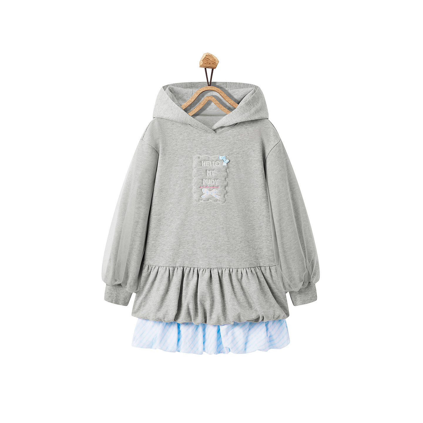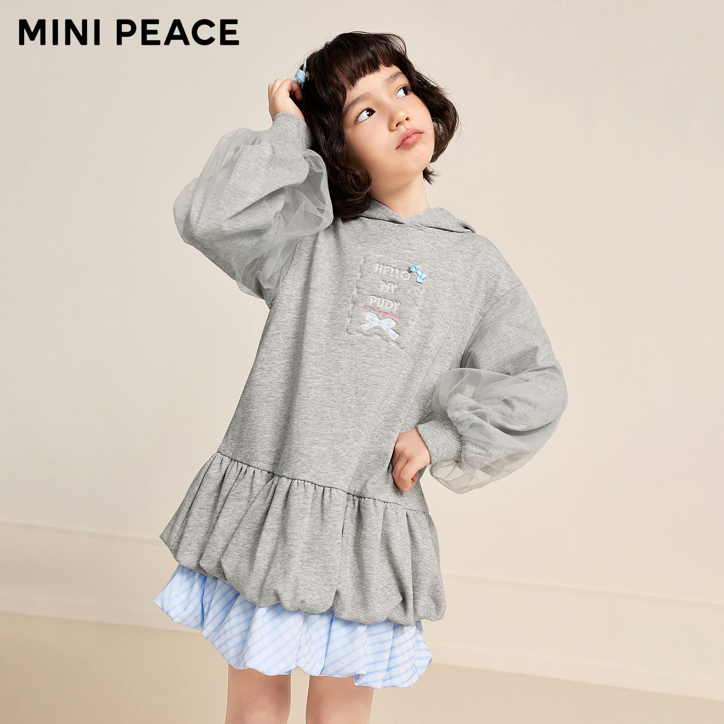 【时尚系列】MINIPEACE太平鸟童装女童连帽卫衣裙春季拼接花苞裙