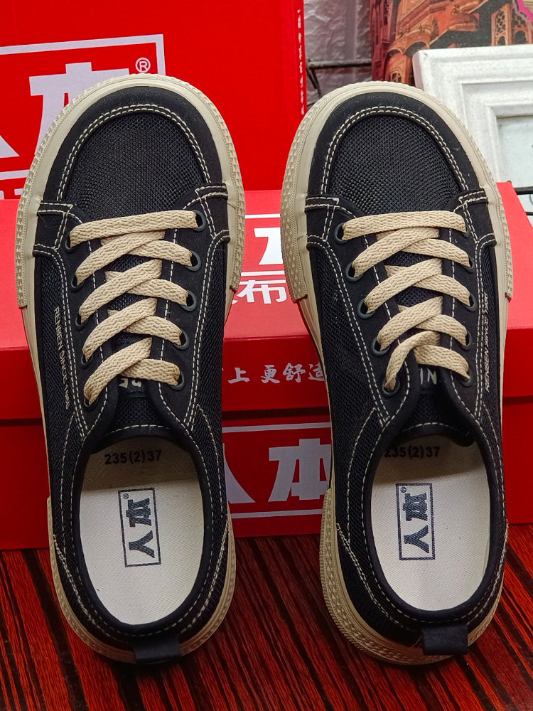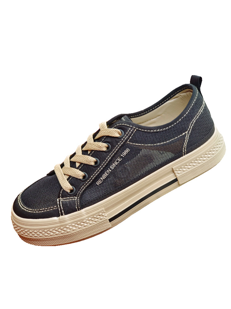 人本女鞋网面休闲鞋黑色春夏新品镂空透气板鞋单层网鞋学生小白鞋