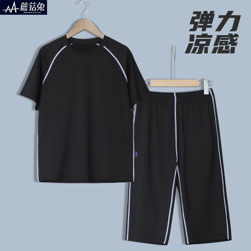 胖童紧身衣男童跑步运动短袖套装篮球足球速干衣七分裤健身训练服