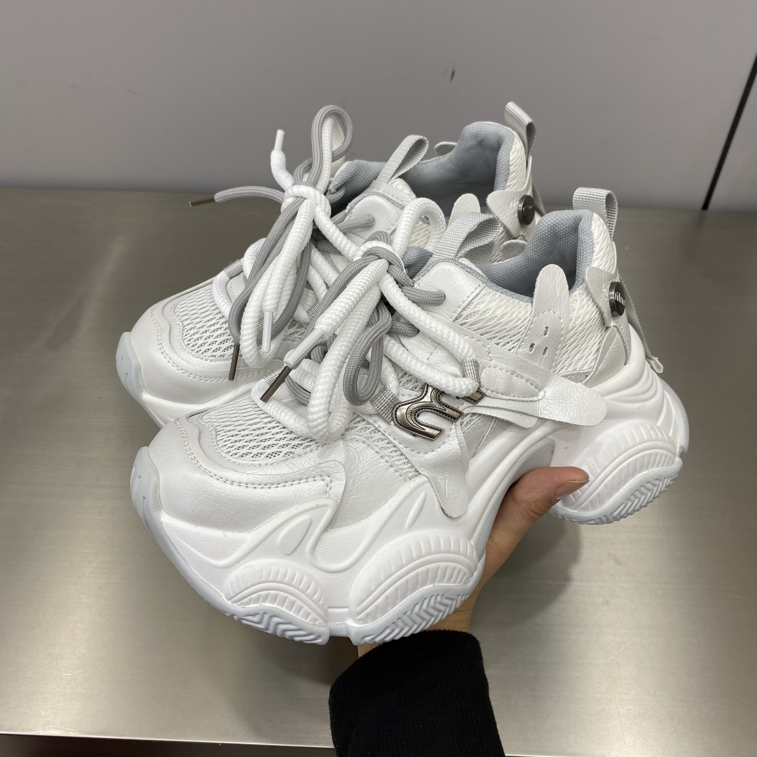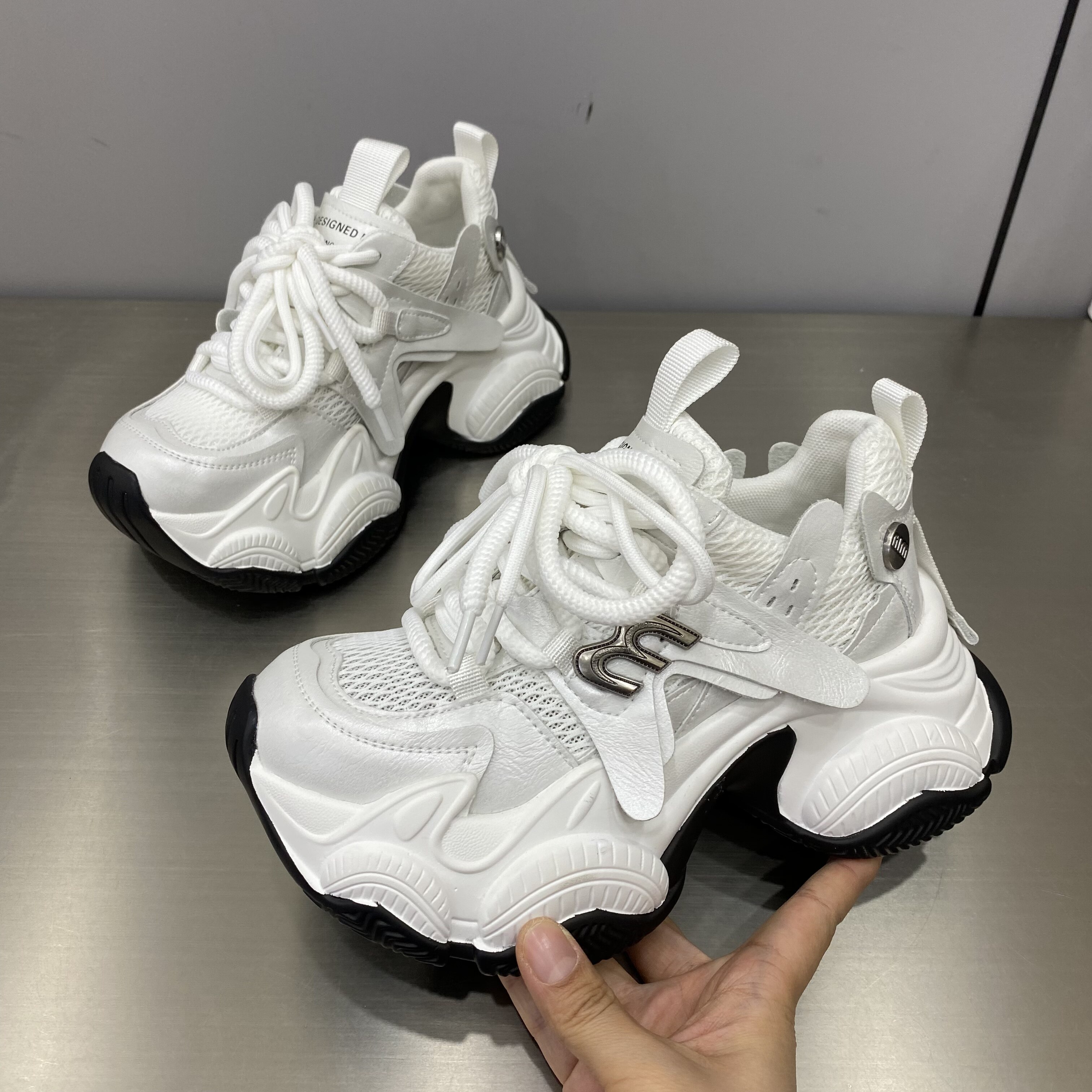 2026春季新款女厚底绑带薄款拼色老爹鞋女休闲运动透气网面单鞋女