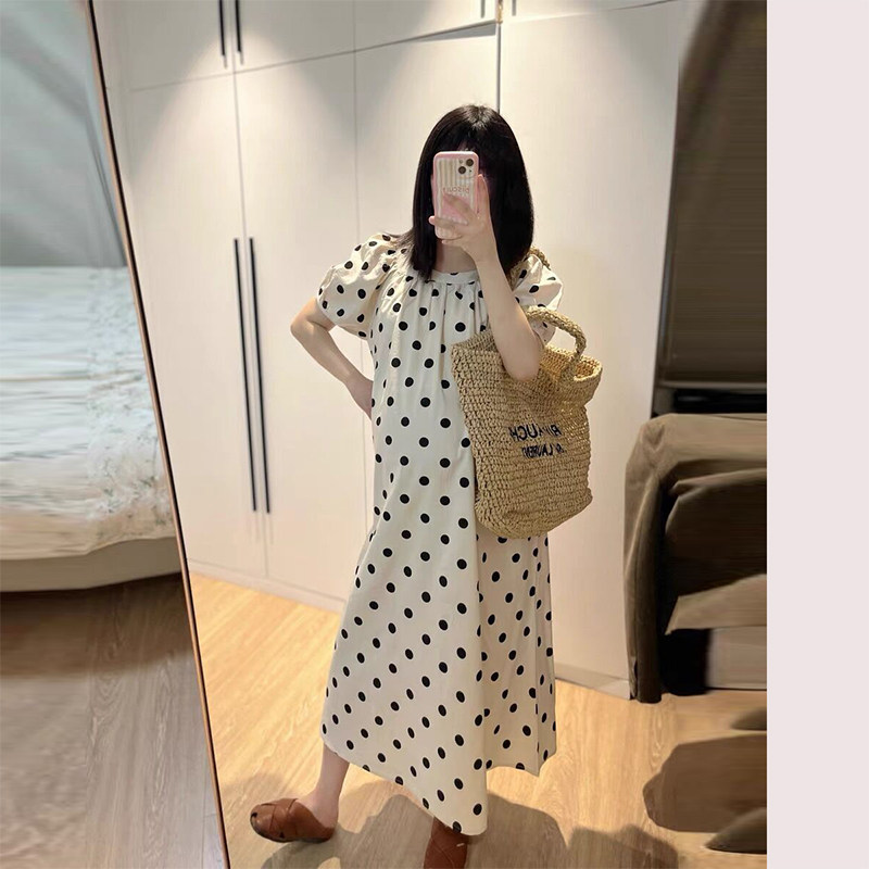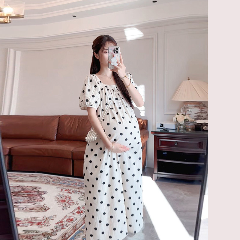 孕妇夏装连衣裙时尚洋气波点长裙女夏款2026新款方领大码孕妇裙子