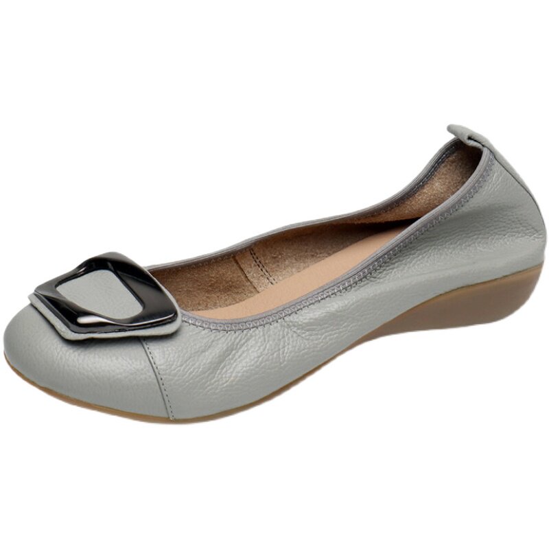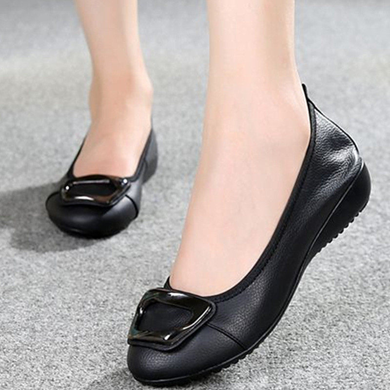头层软牛皮妈妈鞋舒适软底浅口圆头平底豆豆鞋孕妇工作真皮女单鞋
