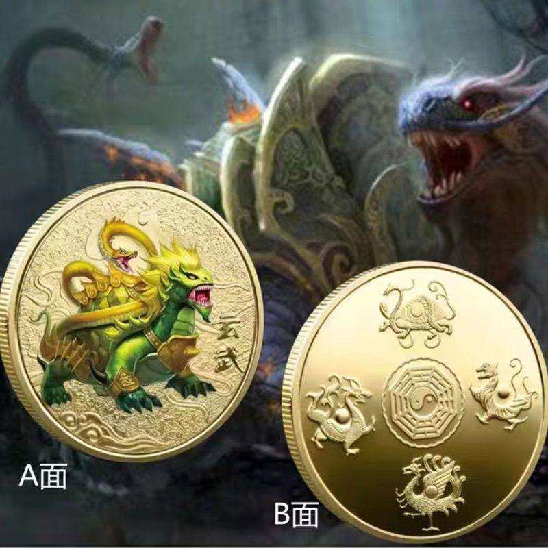 四大神兽纪念币摆件朱雀瑞兽青龙白虎玄武守护礼物送人硬币金银币