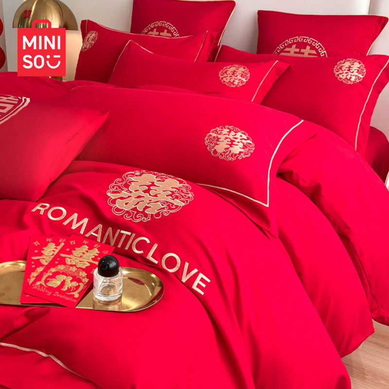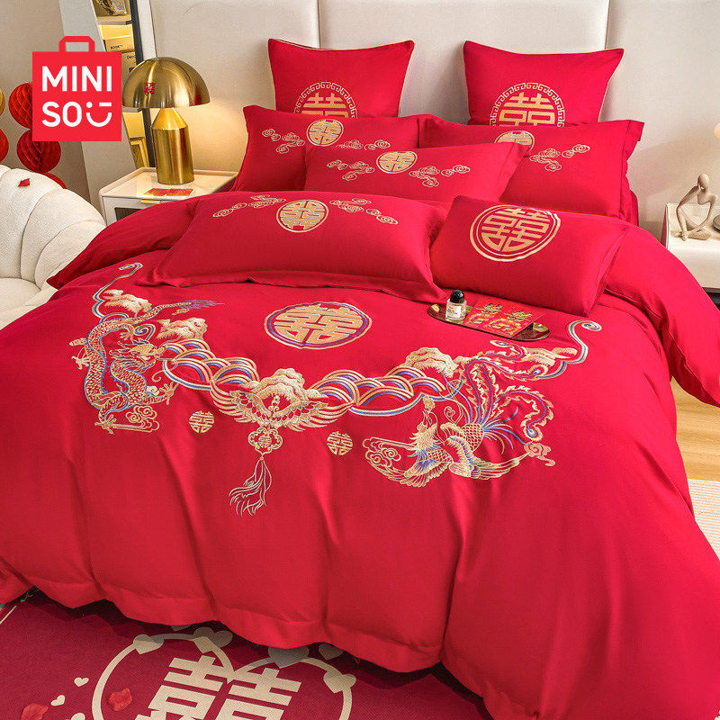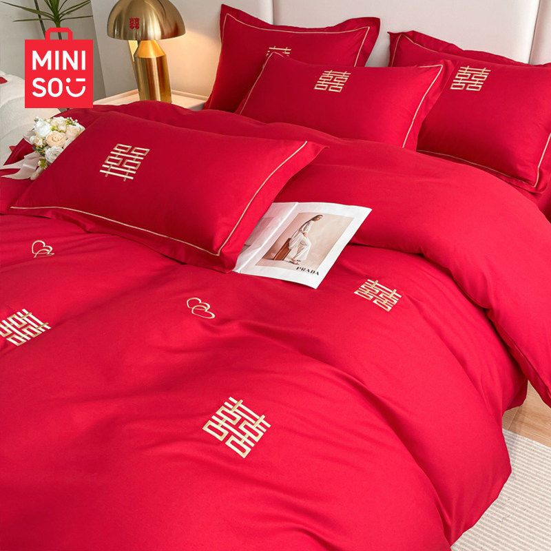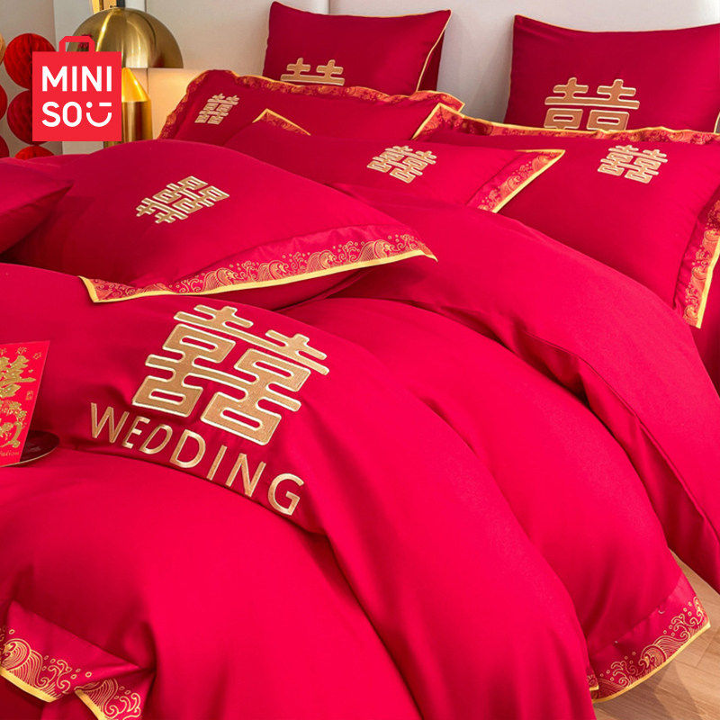 名创优品中式结婚庆四件套红色刺绣婚房婚礼被套床上用品2026新款