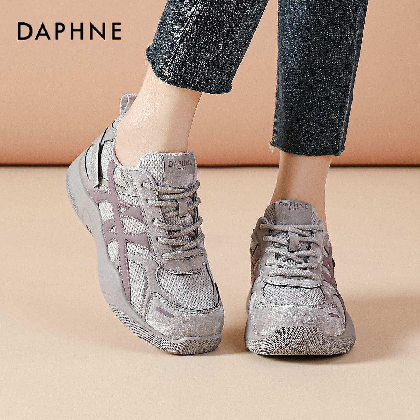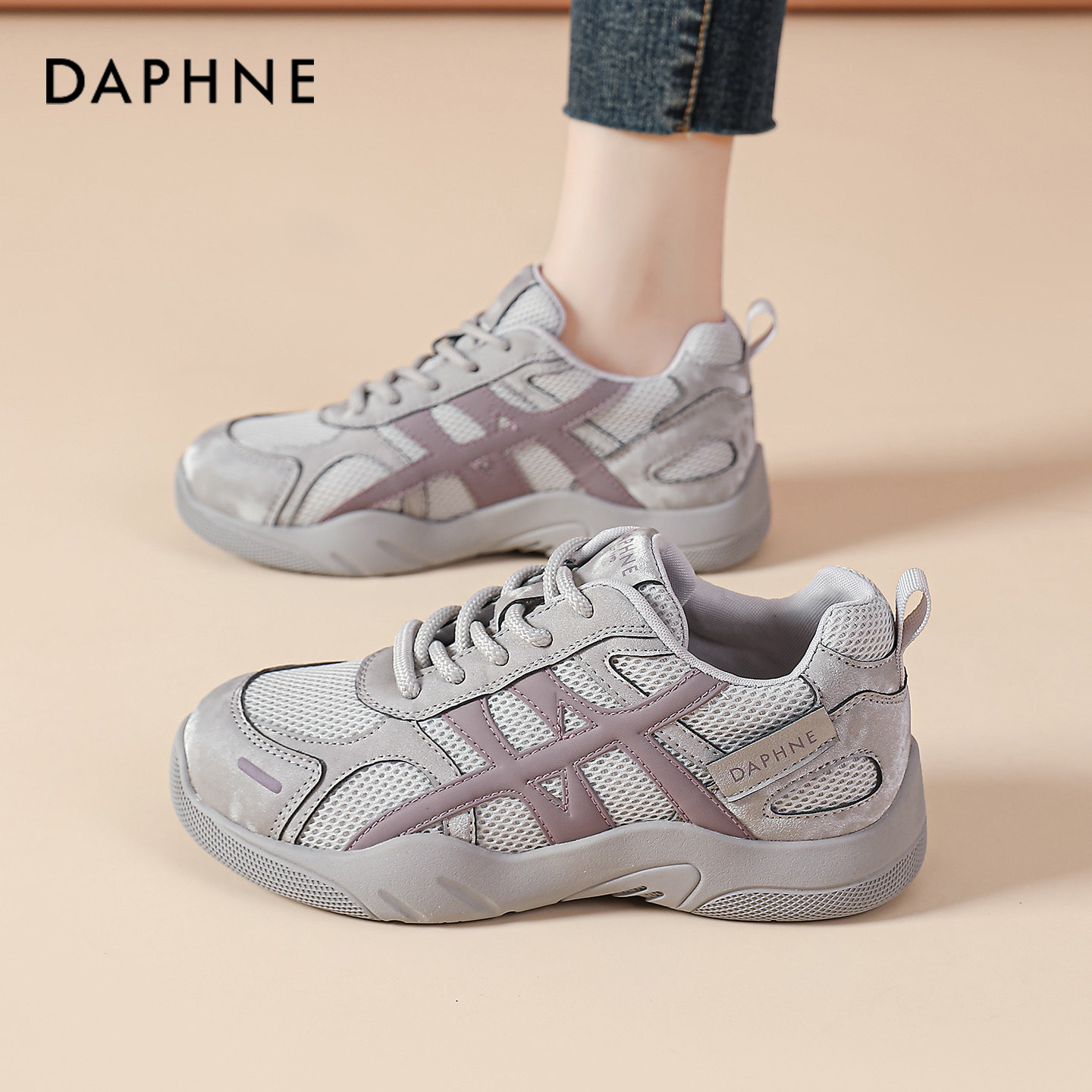 达芙妮德训鞋女鞋夏季2026新款阿甘巨好看百搭网面厚底老爹休闲鞋