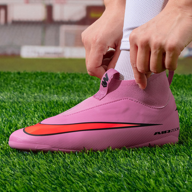 耐克刺客系列16大童无鞋带中端人草足球鞋高帮AG短钉鞋FQ8308-600