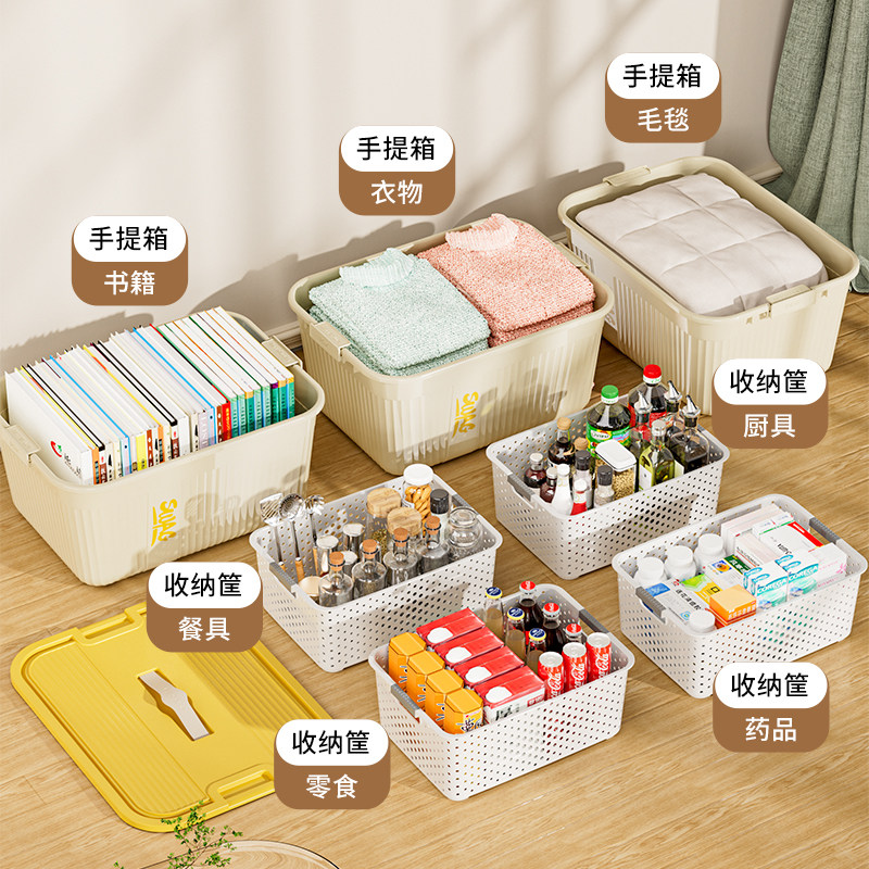 手提收纳箱家用带盖衣服玩具零食储物箱大容量儿童书本绘本整理箱
