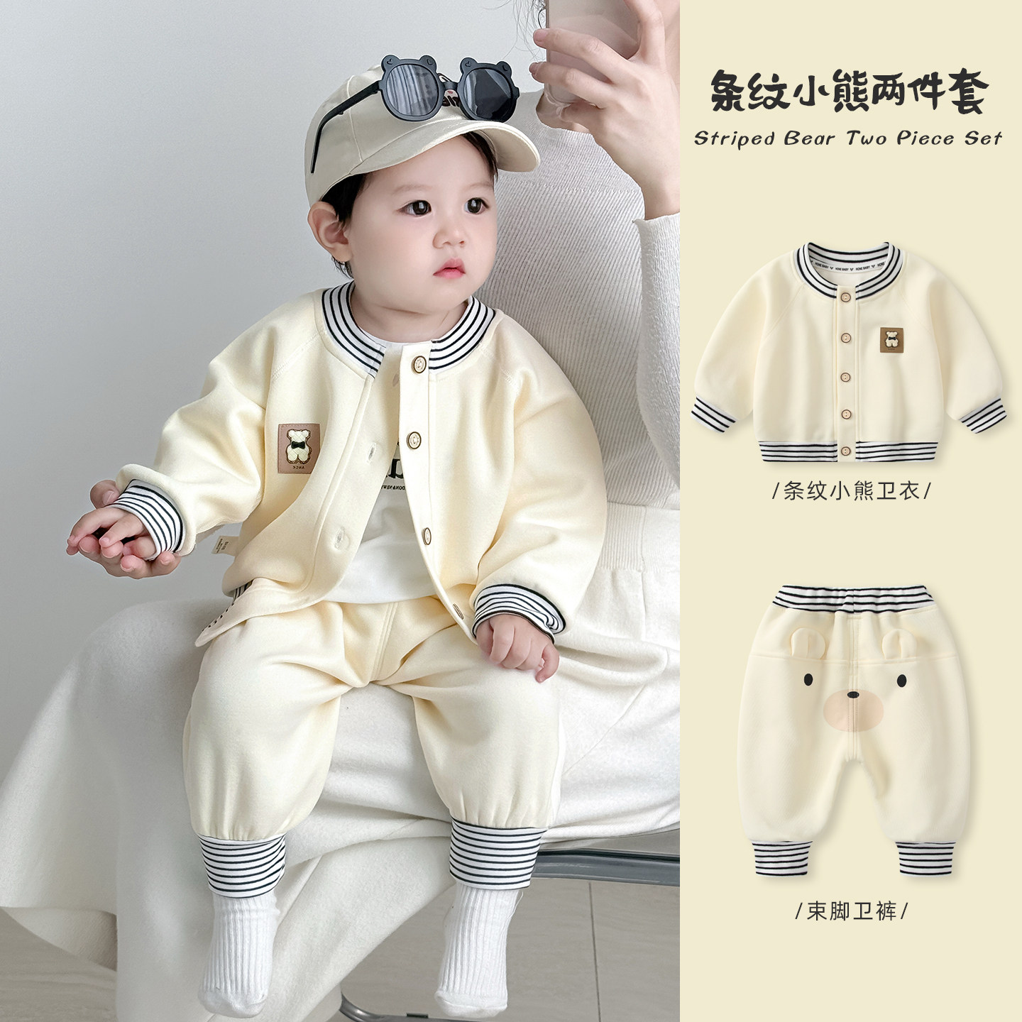 宝宝套装春装新款男童洋气卫衣分体三件套婴儿开衫春秋款外出衣服