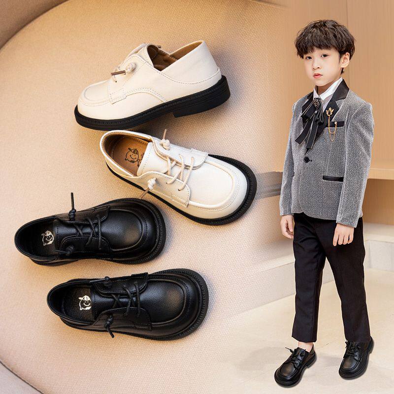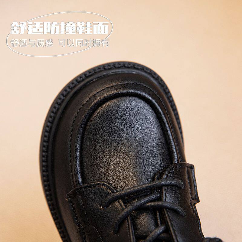 男童小皮鞋英伦风2025新款软底学生黑色表演出女童真皮学院风单鞋