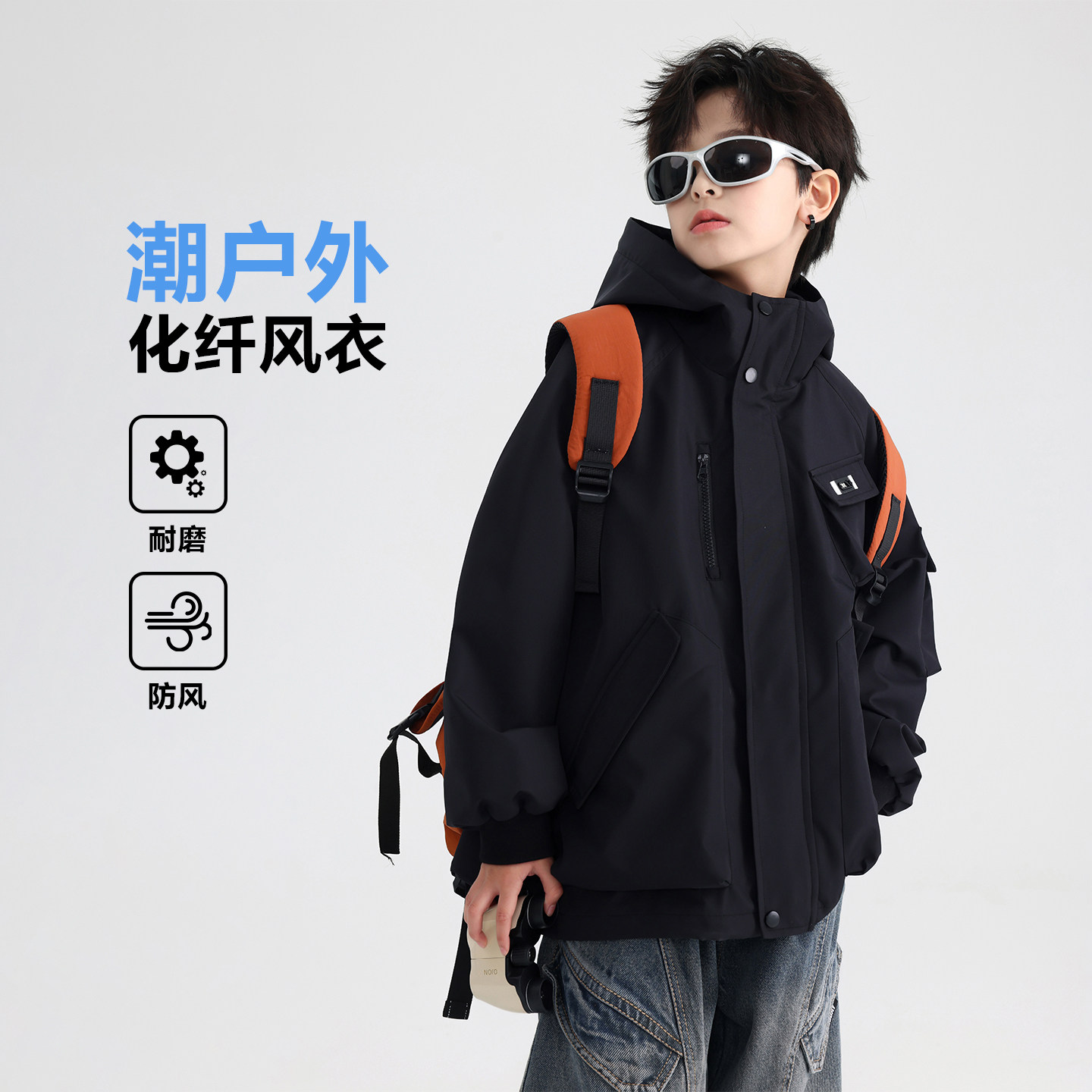男童春秋户外防风冲锋衣外套2026新款青少年儿童春装防水运动夹克