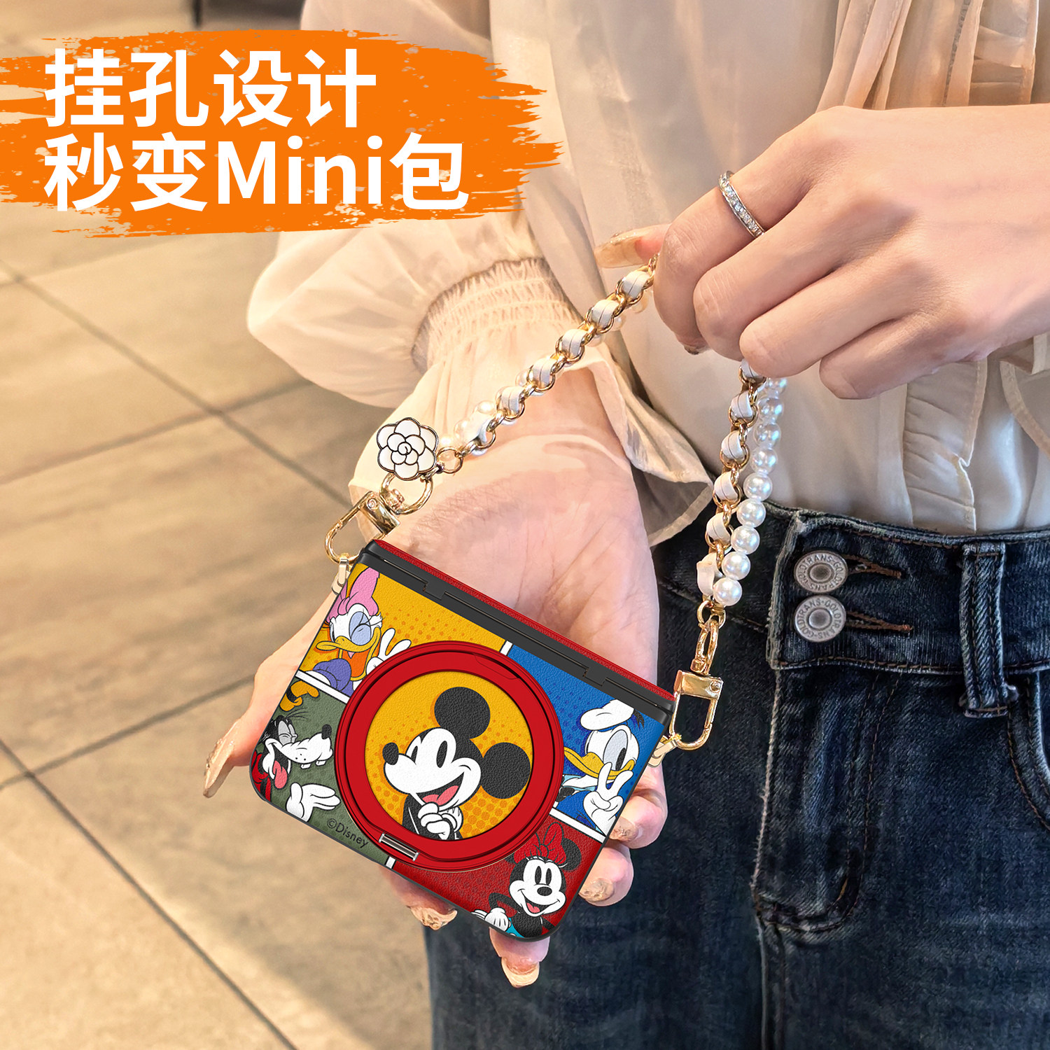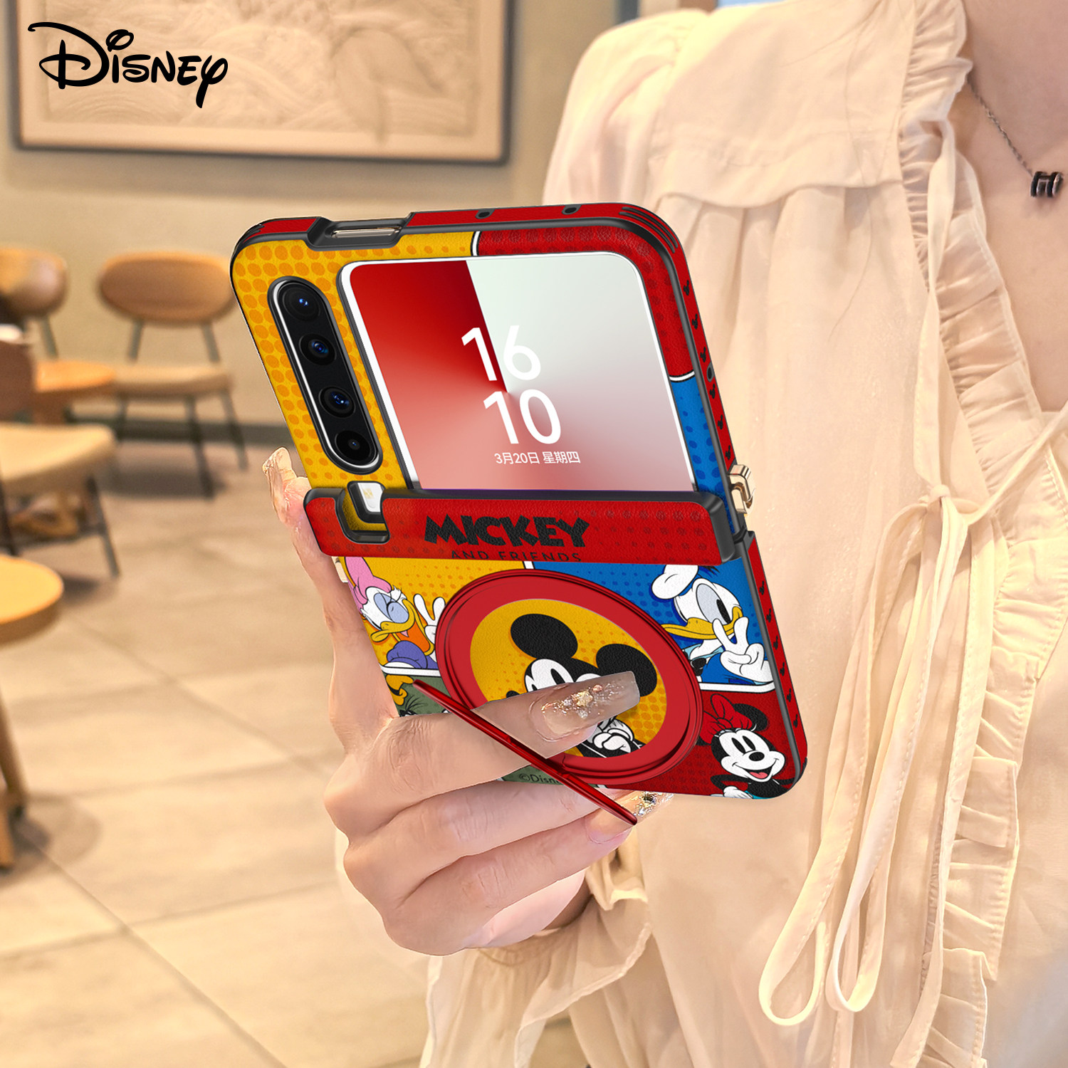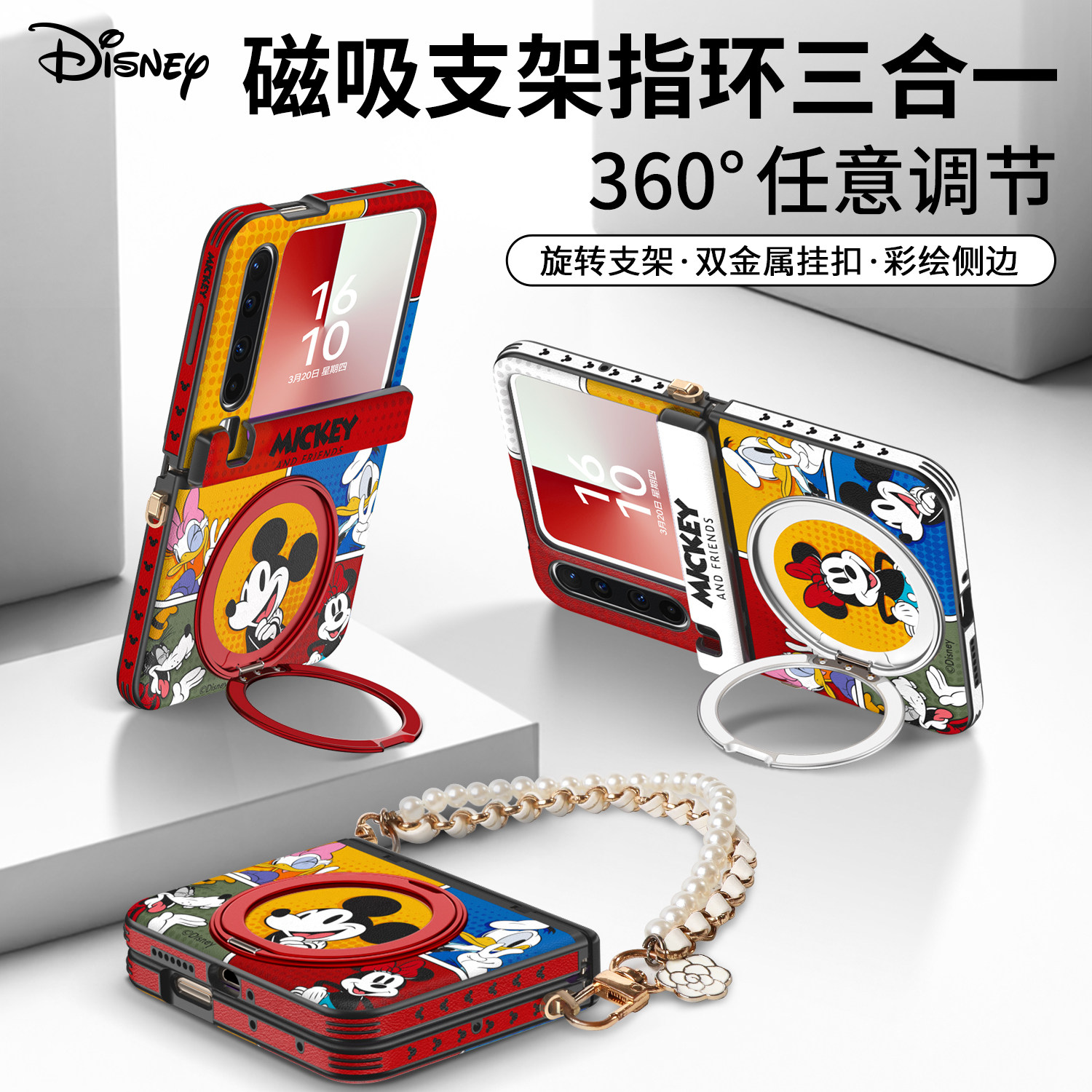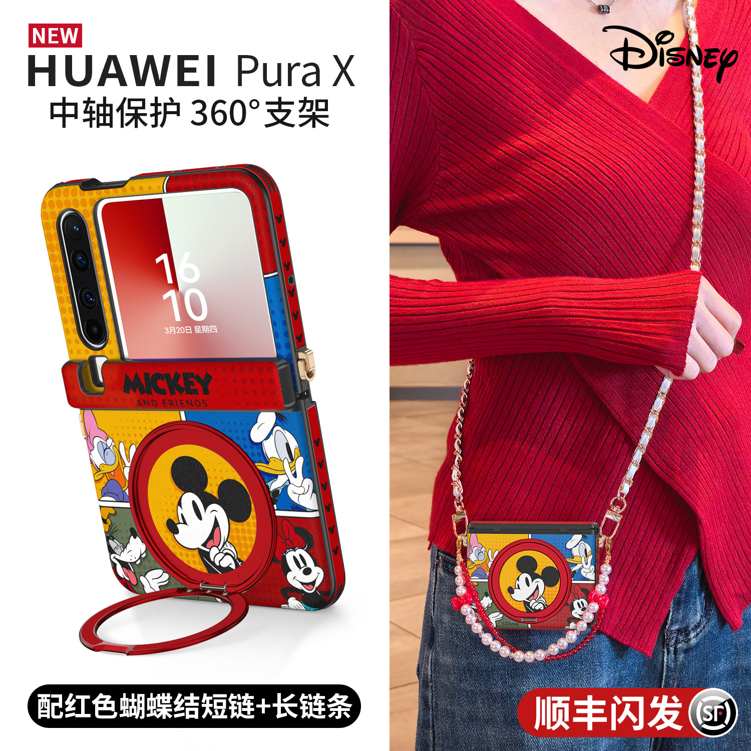 迪士尼漫画适用华为purax手机壳新款2026红色pura典藏版x旋转支架外壳中轴全包带挂绳卡通可爱女米妮保护套