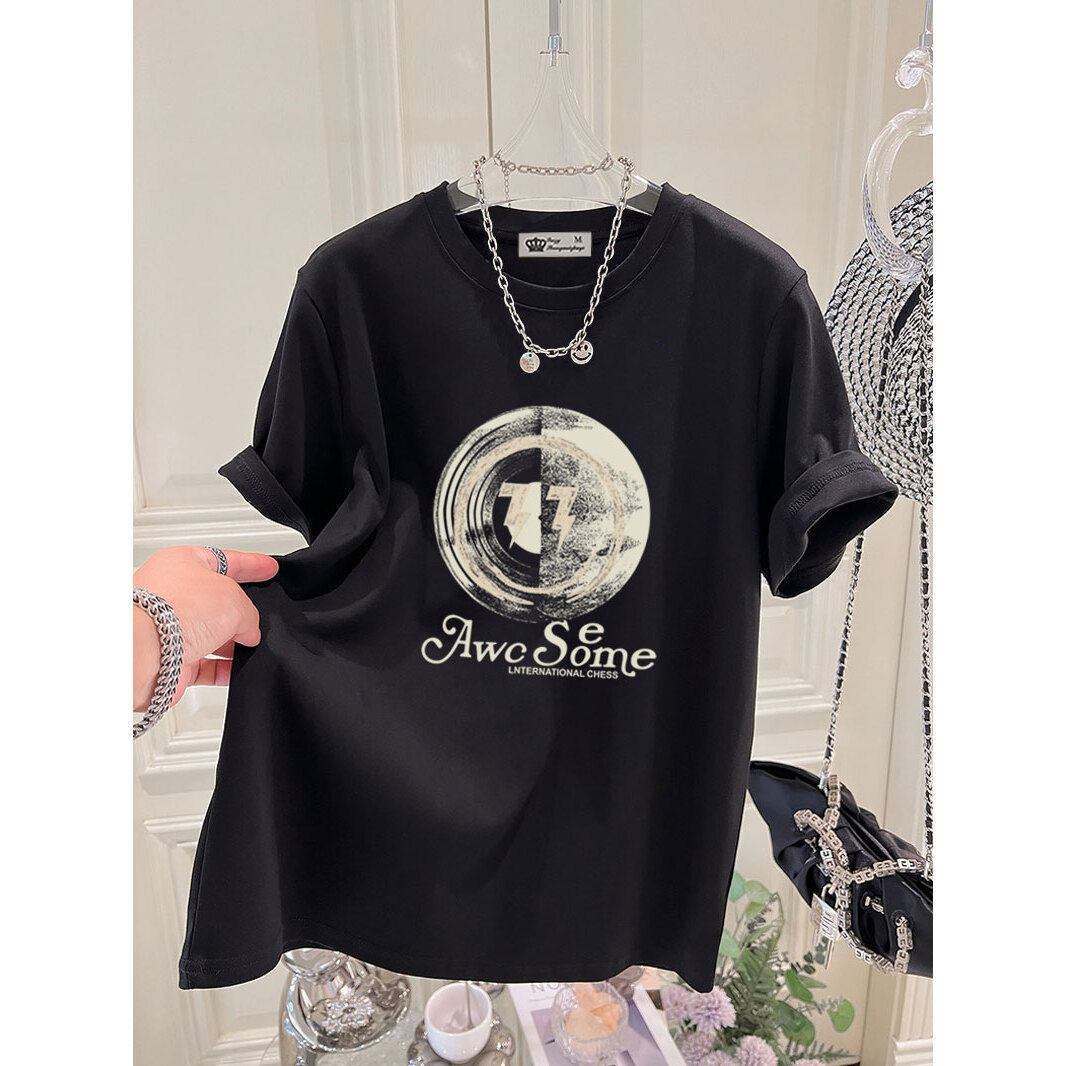 2026新款夏季韩版火龙果红色上衣小众设计感大版宽松短袖t恤女潮