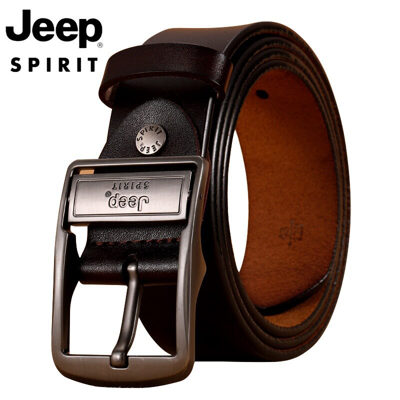 吉普2025新款男士牛皮针扣皮带时尚百搭中年正品真皮男式裤带休闲