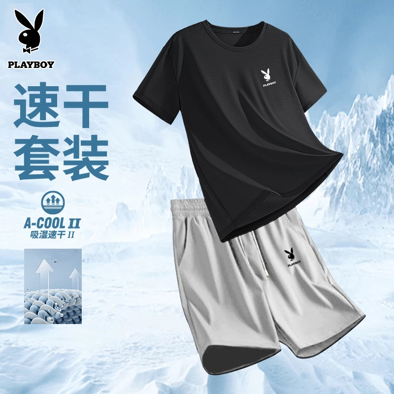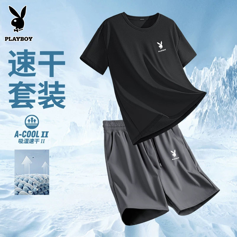 花花公子运动套装男士宽松短袖短裤一整套夏季新款青少年休闲男装