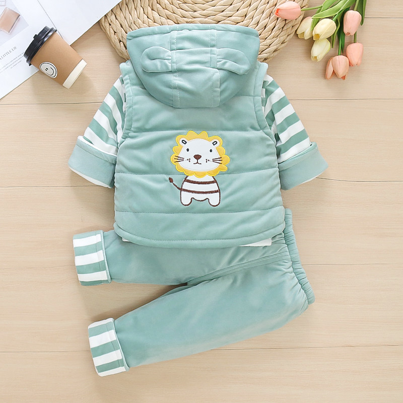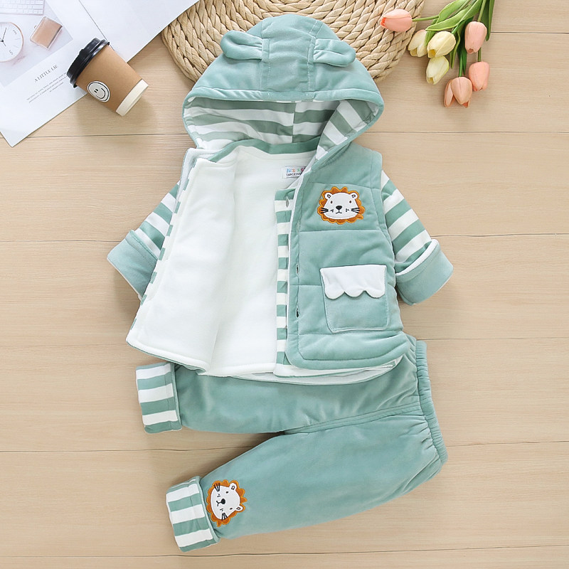 男女宝宝春秋夹棉套装新生婴幼儿薄棉衣服冬装加厚分体外出三件套