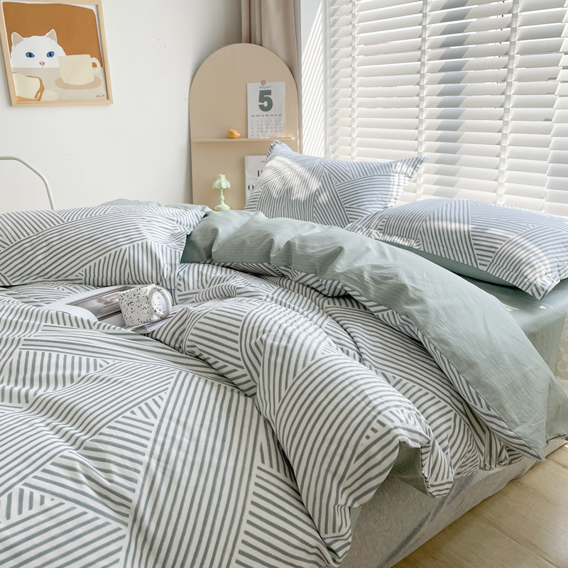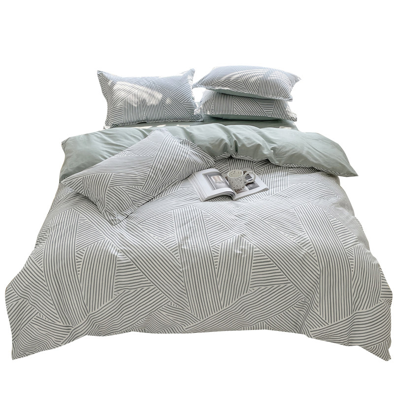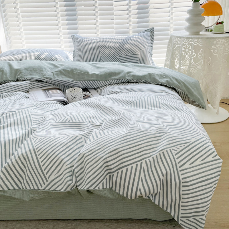 极简风线条纹纯棉男生被套四件套北欧简约全棉床单宿舍三件套床品