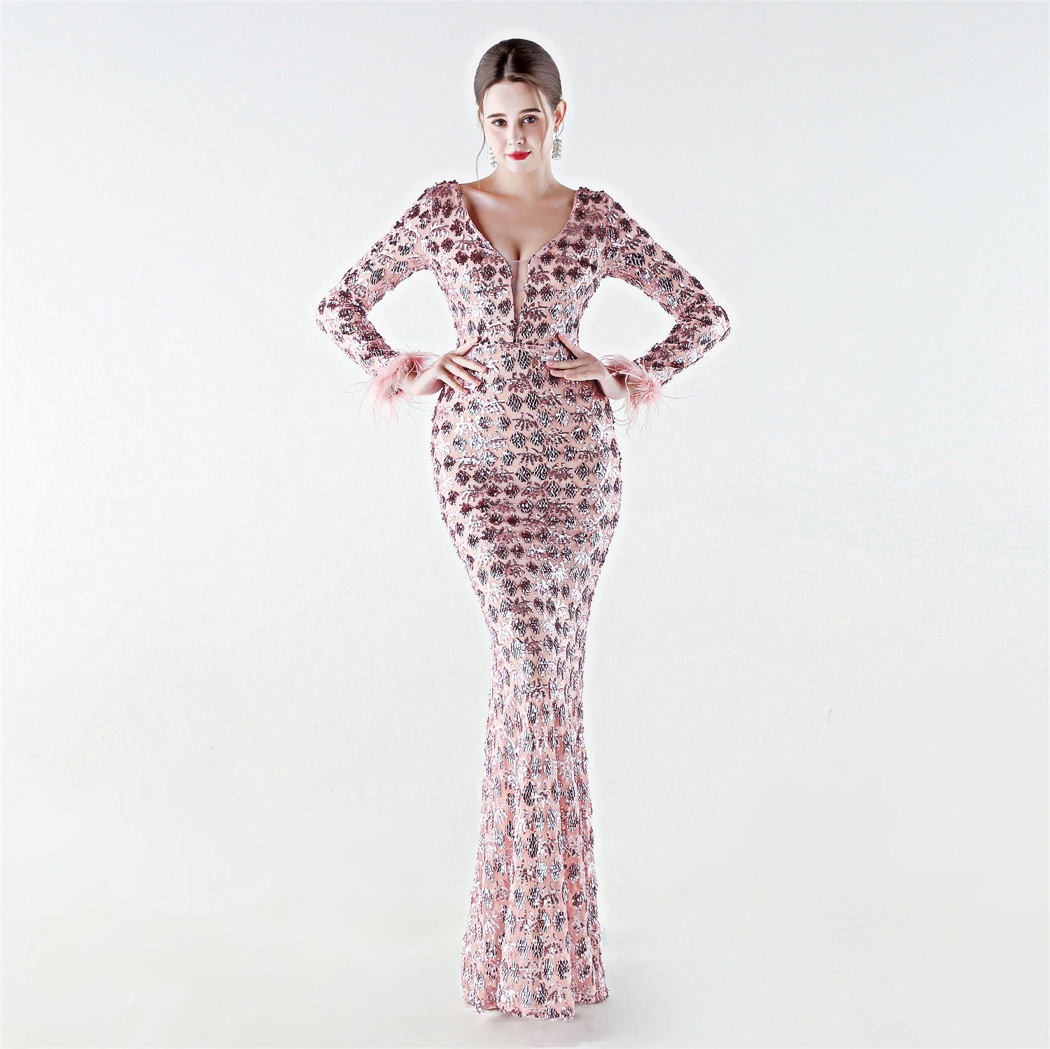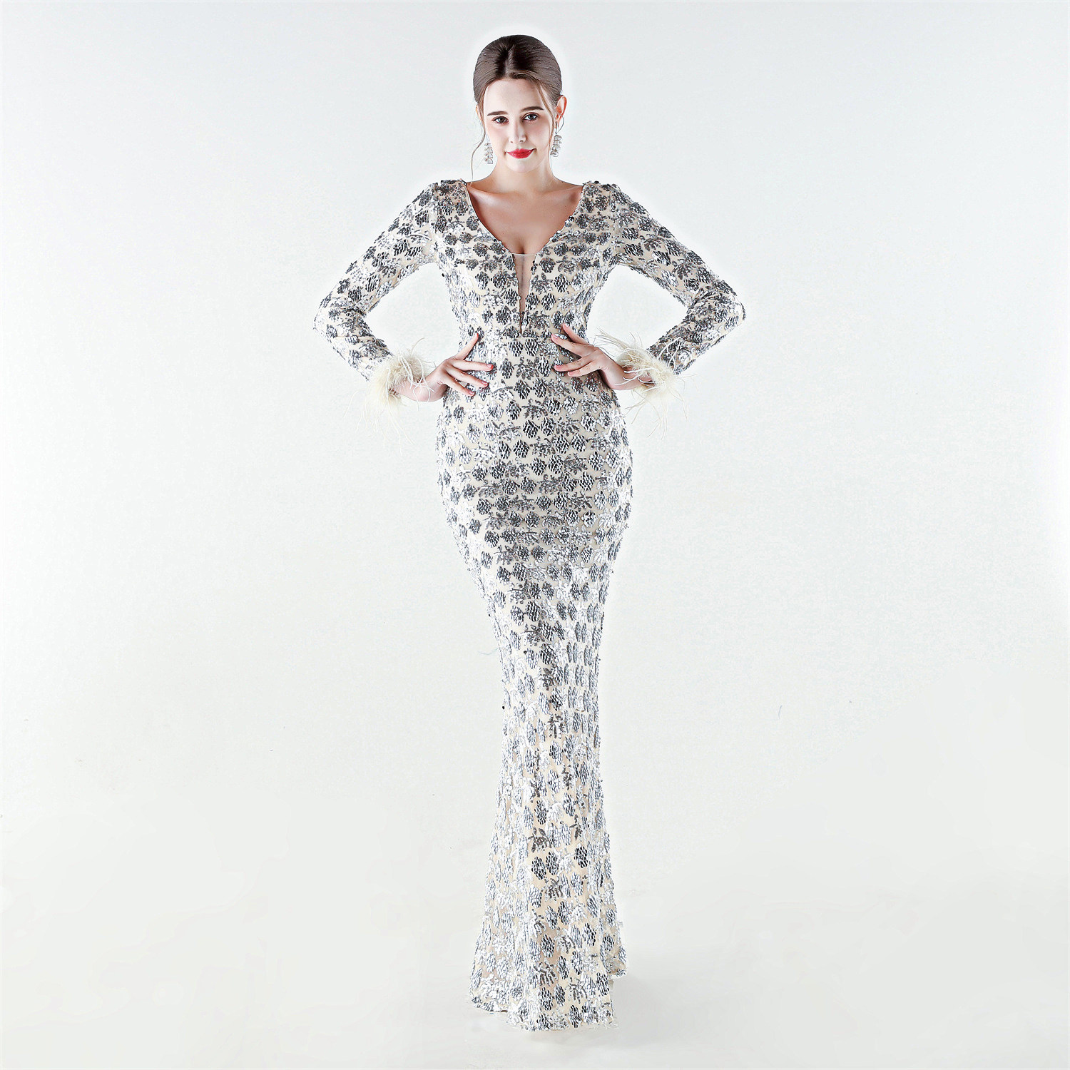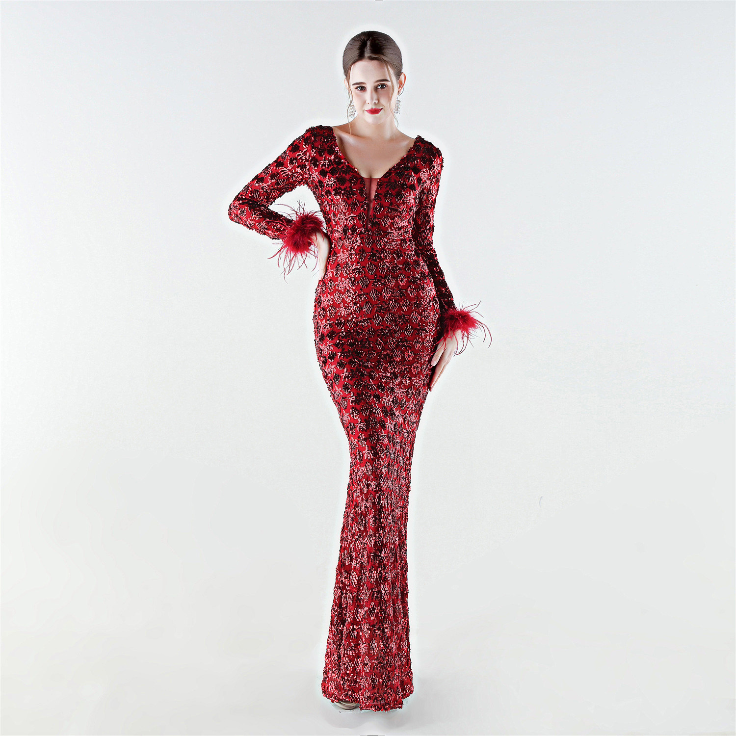 晚礼服女法式长袖修身显瘦高级感独特绝美漂亮小众轻奢鱼尾连衣裙