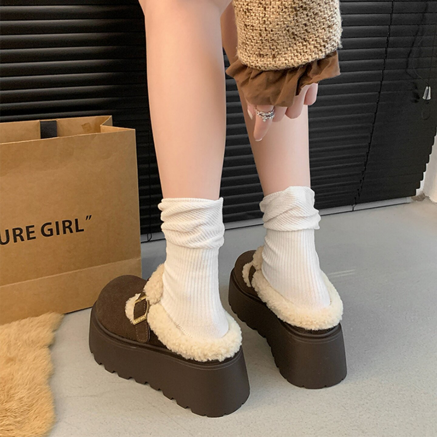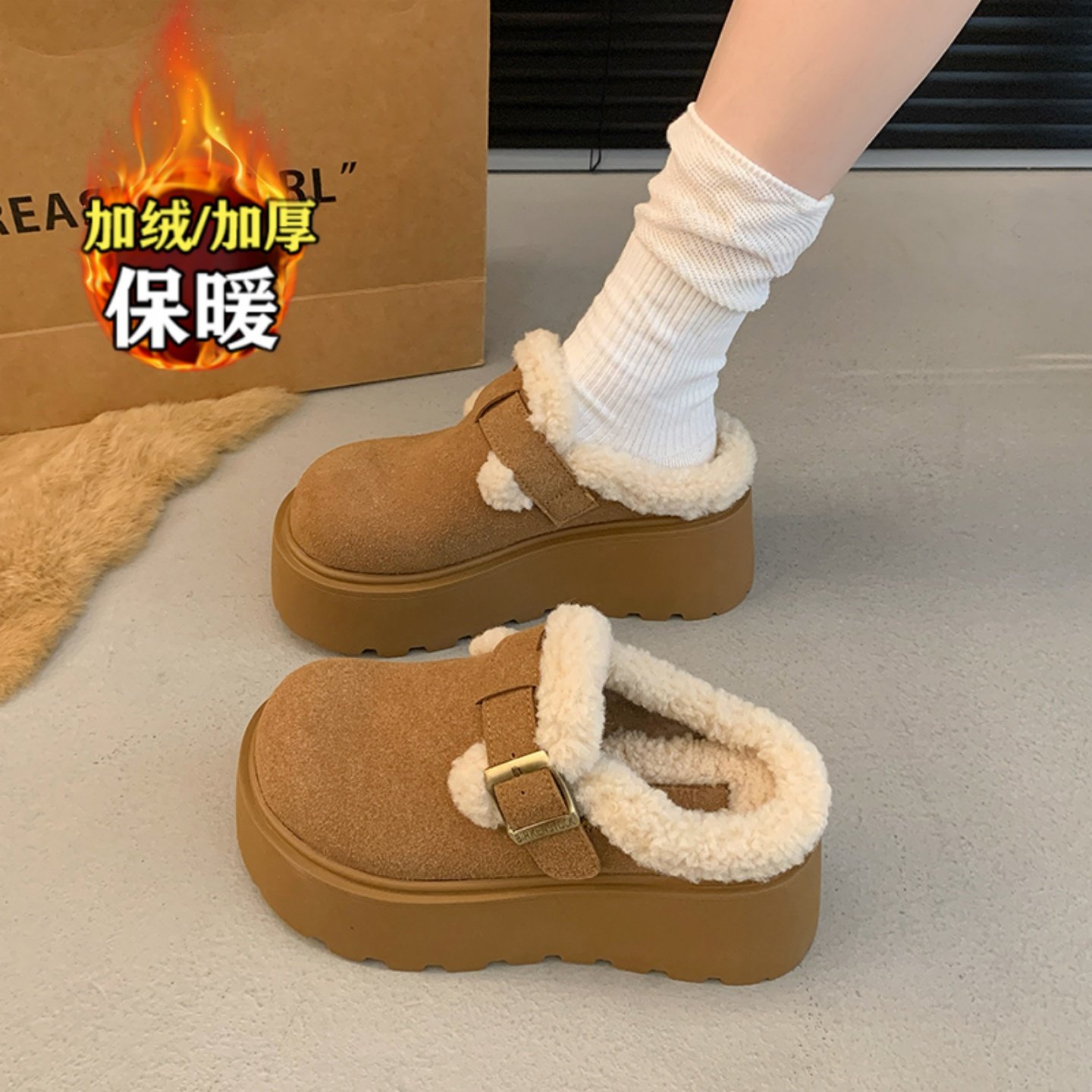 品牌真皮包头半拖鞋女2025冬季新款厚底增高加绒勃肯棉鞋雪地靴子