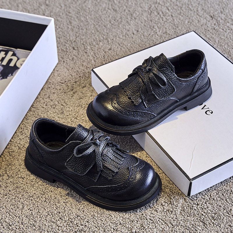 儿童真皮女童黑皮鞋单鞋春秋款礼仪鞋演出表演鞋子学院风宝宝软皮