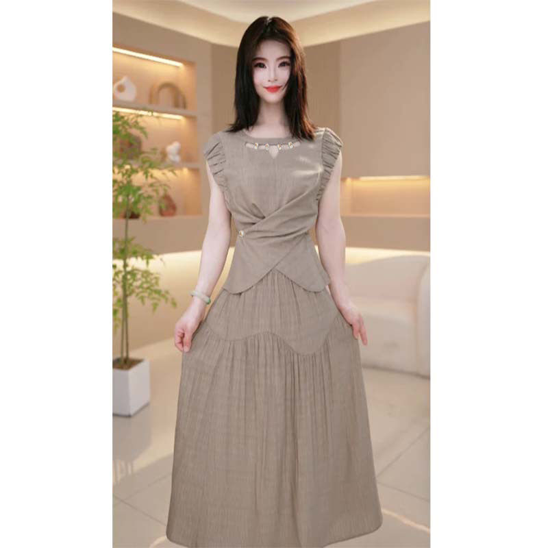 2026春季新款精致修身大气简约掐腰显瘦连衣裙套装两件套D2948