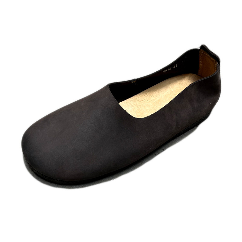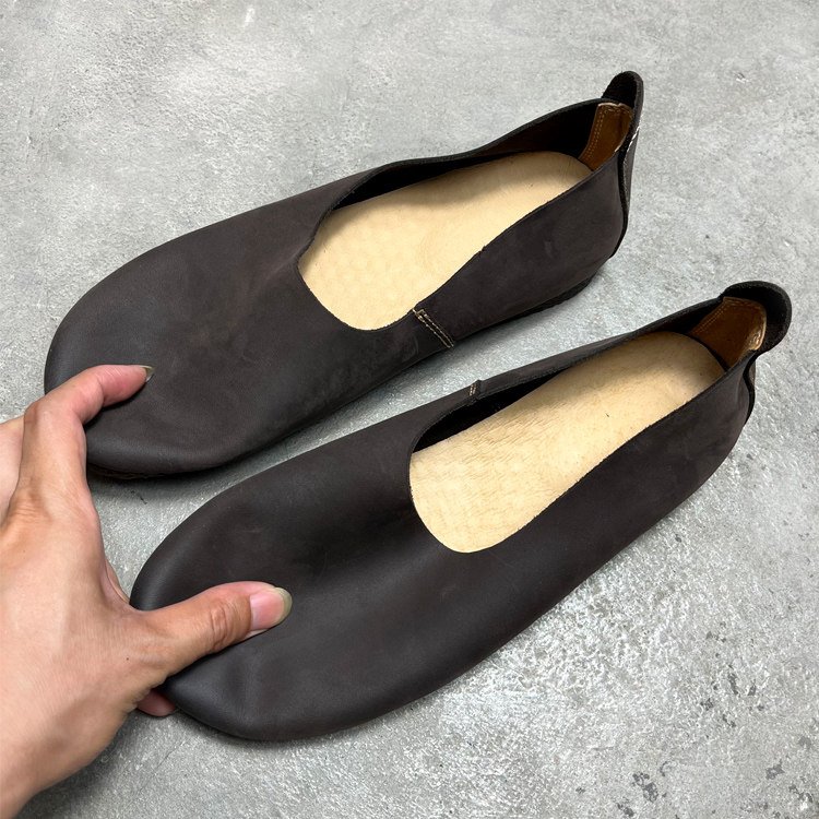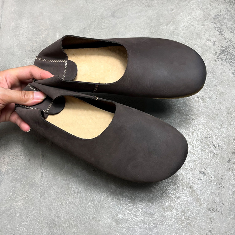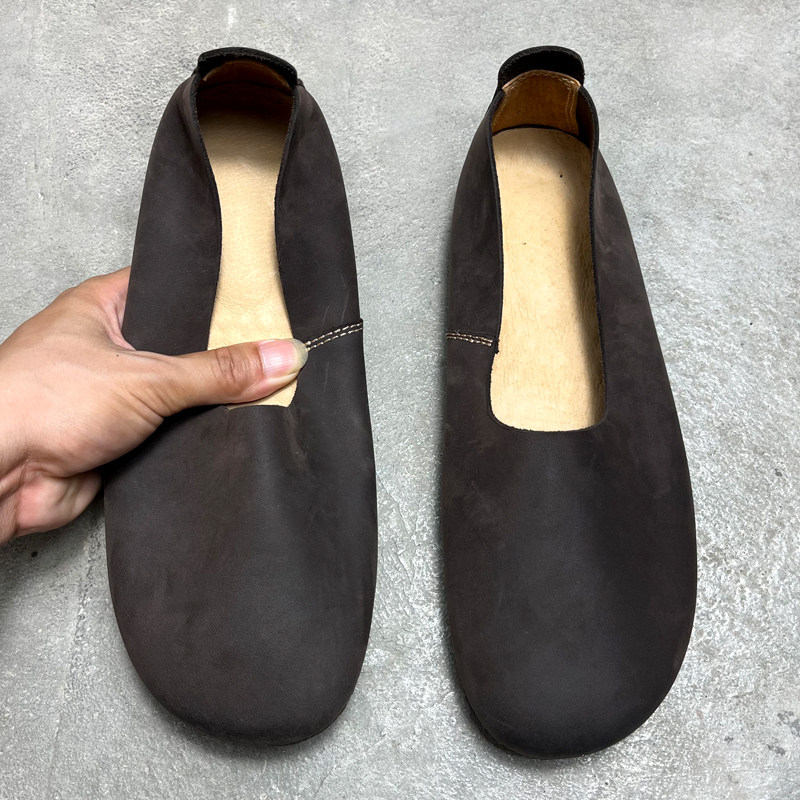 复古文艺手工软皮鞋男款宽头单层牛皮一脚蹬懒人鞋休闲牛筋底男鞋