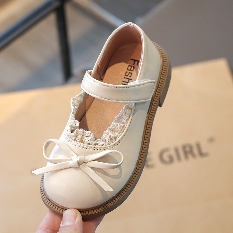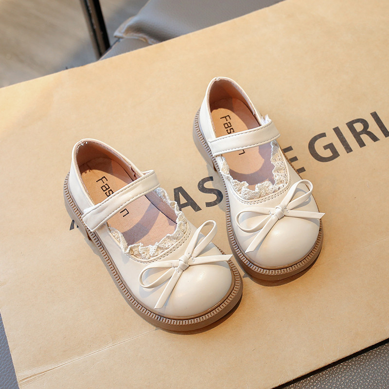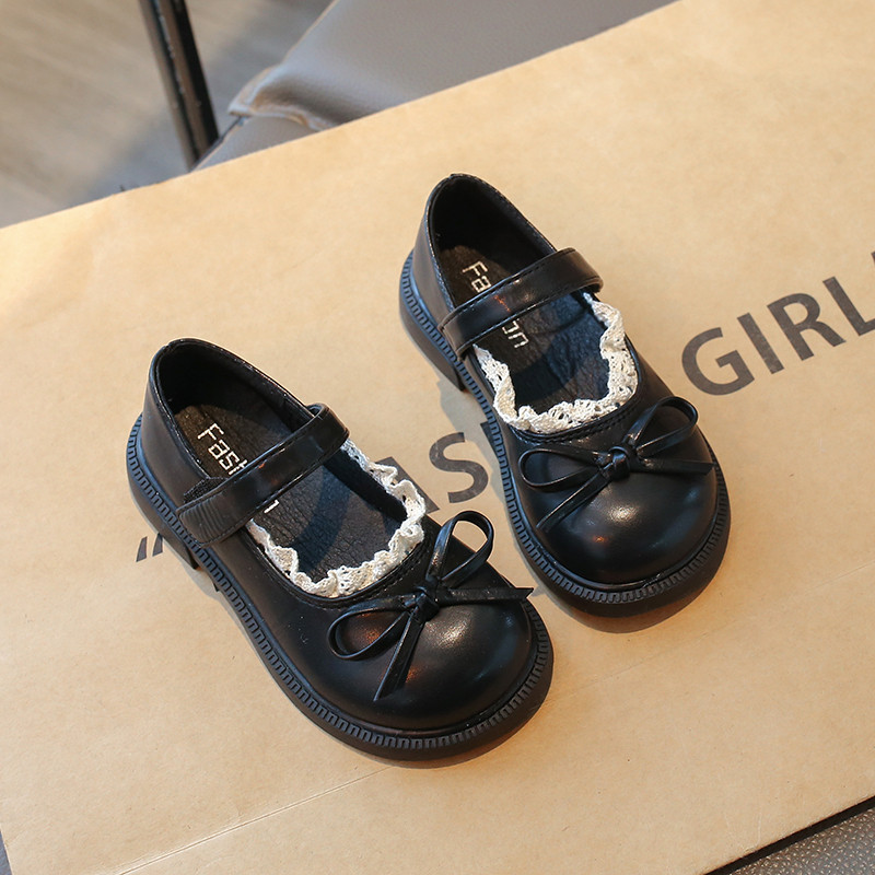 女童蕾丝边蝴蝶结皮鞋鞋子儿童2026春秋新款软底玛丽珍洋气公主鞋