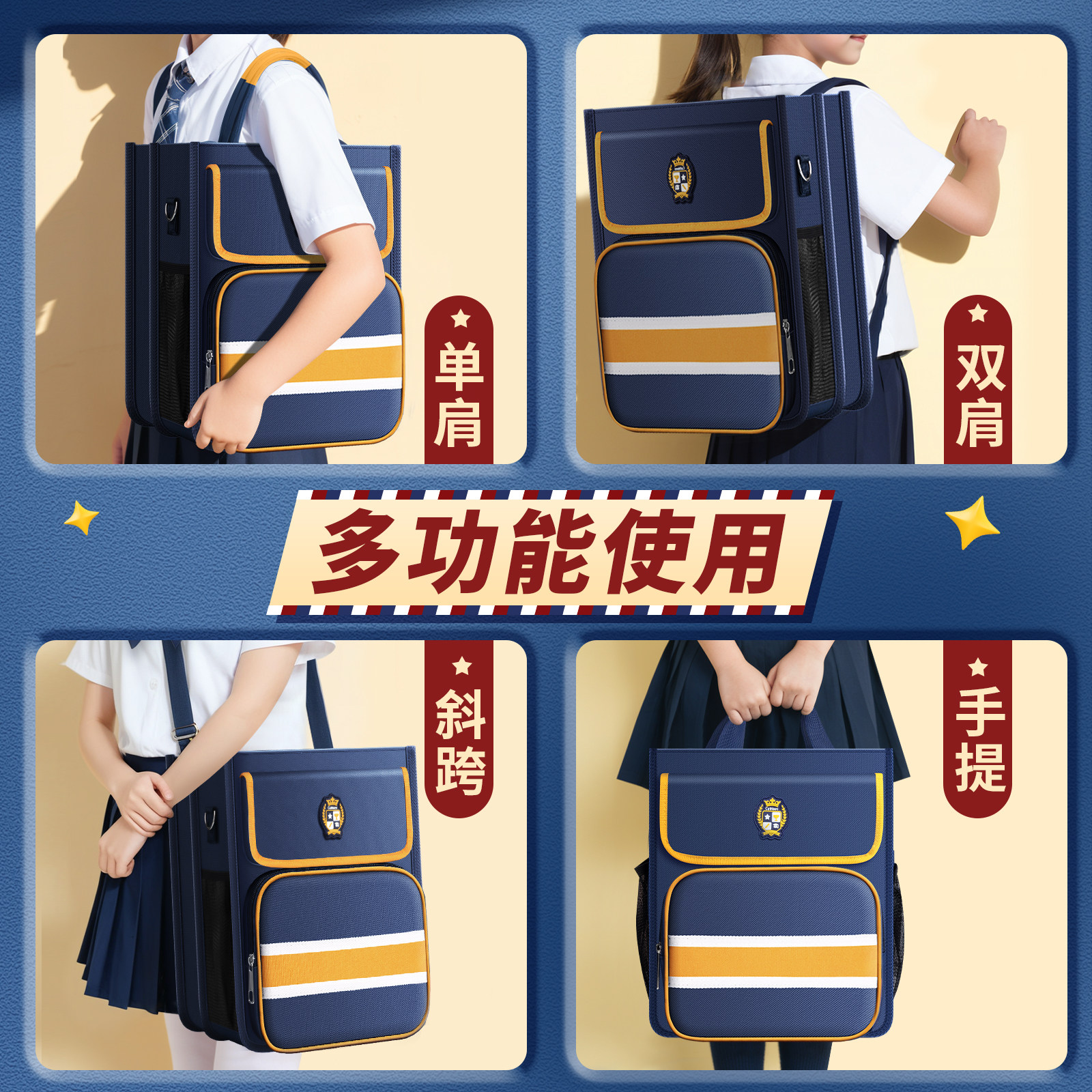 男孩补习袋小学生手提袋拎书袋补课包学生女孩专用拉链式美术袋文件袋收纳袋手提帆布包初中生课外补习班书包