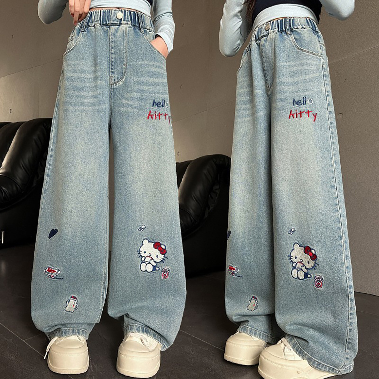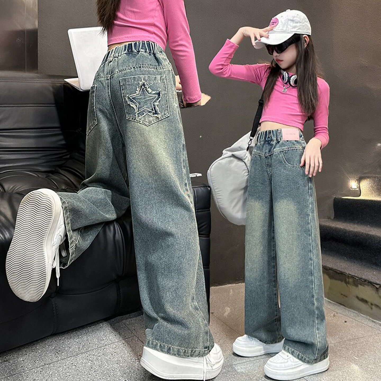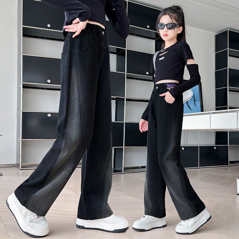 女童牛仔裤春秋款2026新款中大儿童秋装黑色长裤秋季女孩直筒裤子