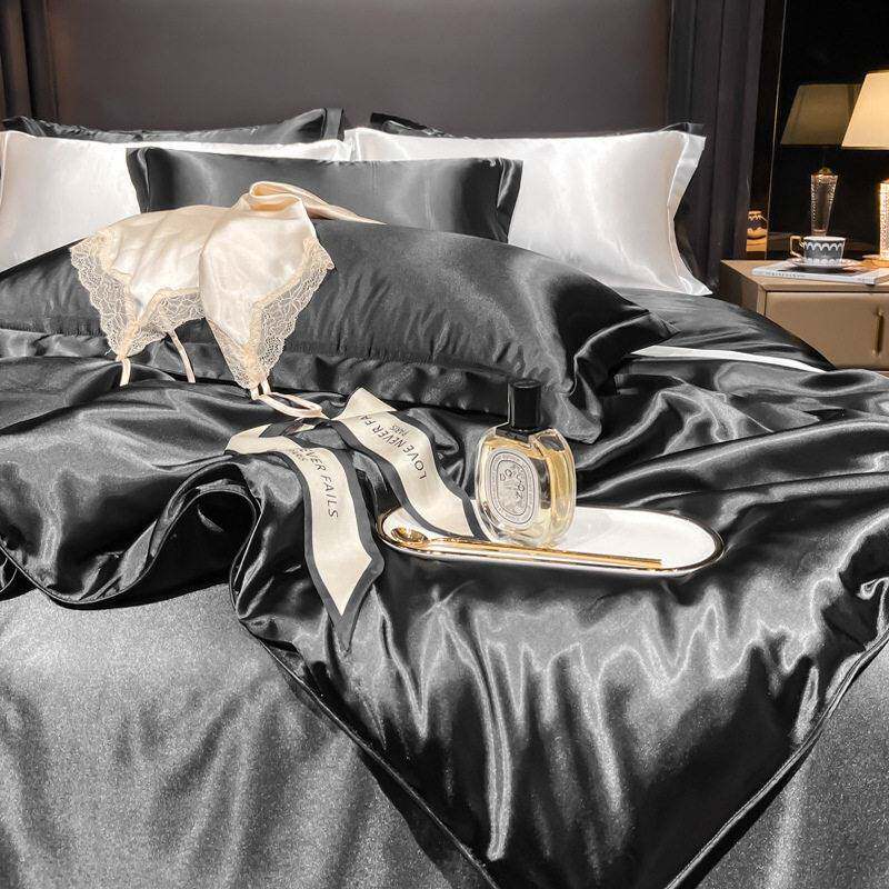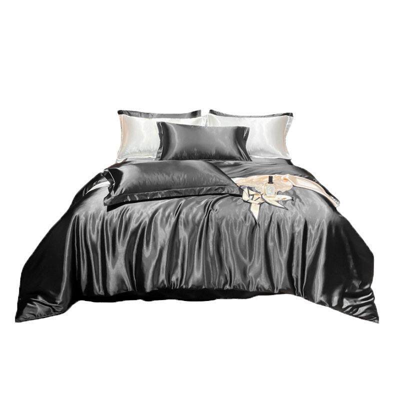 夏天黑色四件套冰丝纯色夏季新款床上用品凉感丝滑床被套床笠