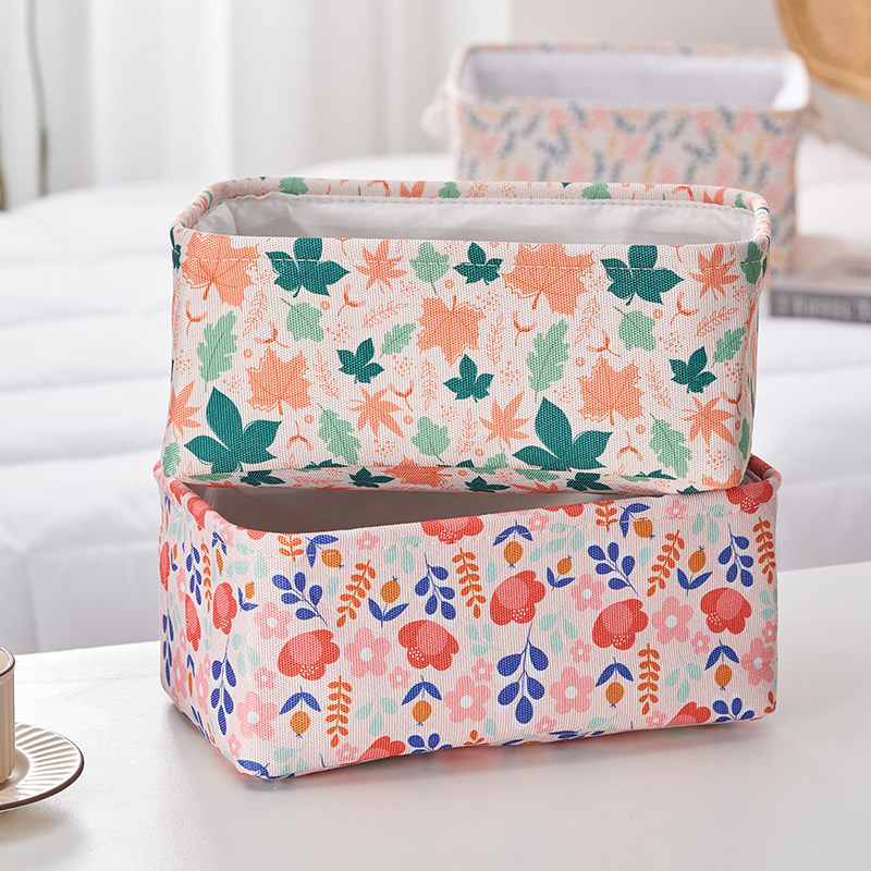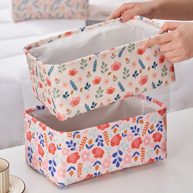 布艺小花收纳盒小号家用收纳箱床头袜子内裤内衣桌面零食杂物收纳