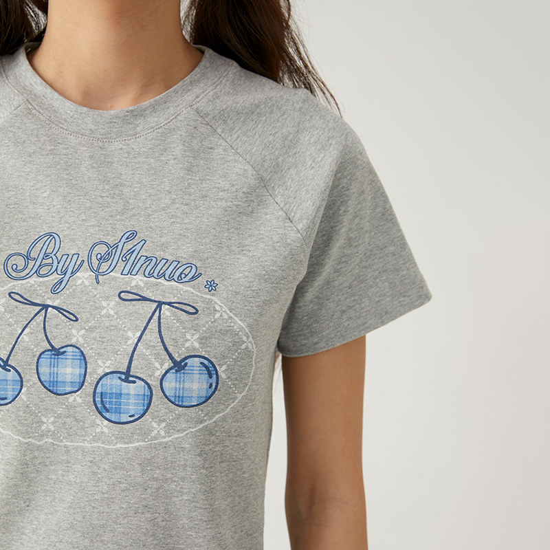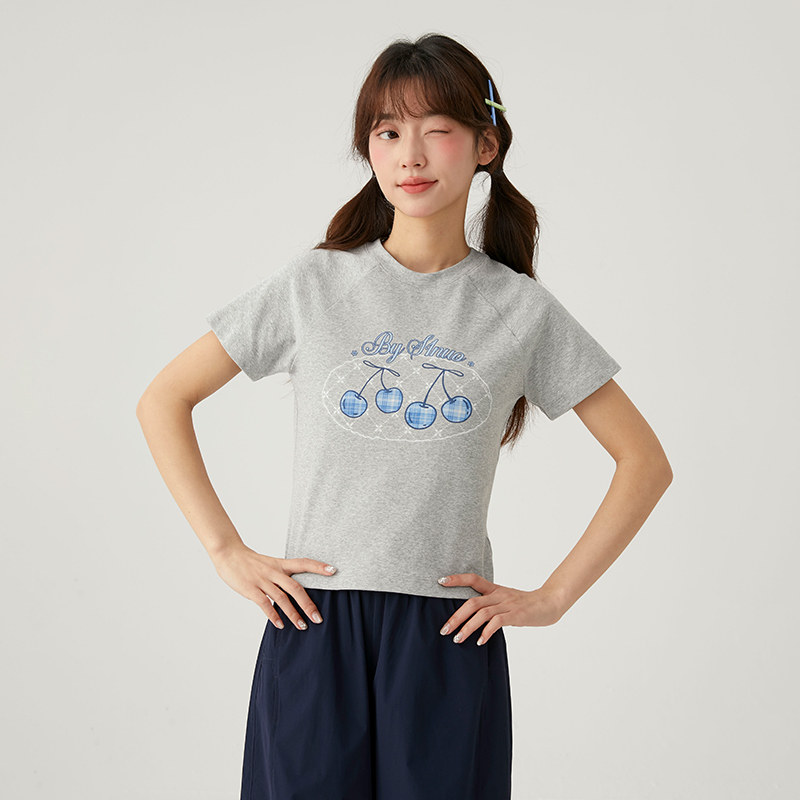 诺诺公主S1N初中生夏季新款印花小版短袖T恤女青少年修身短款上衣