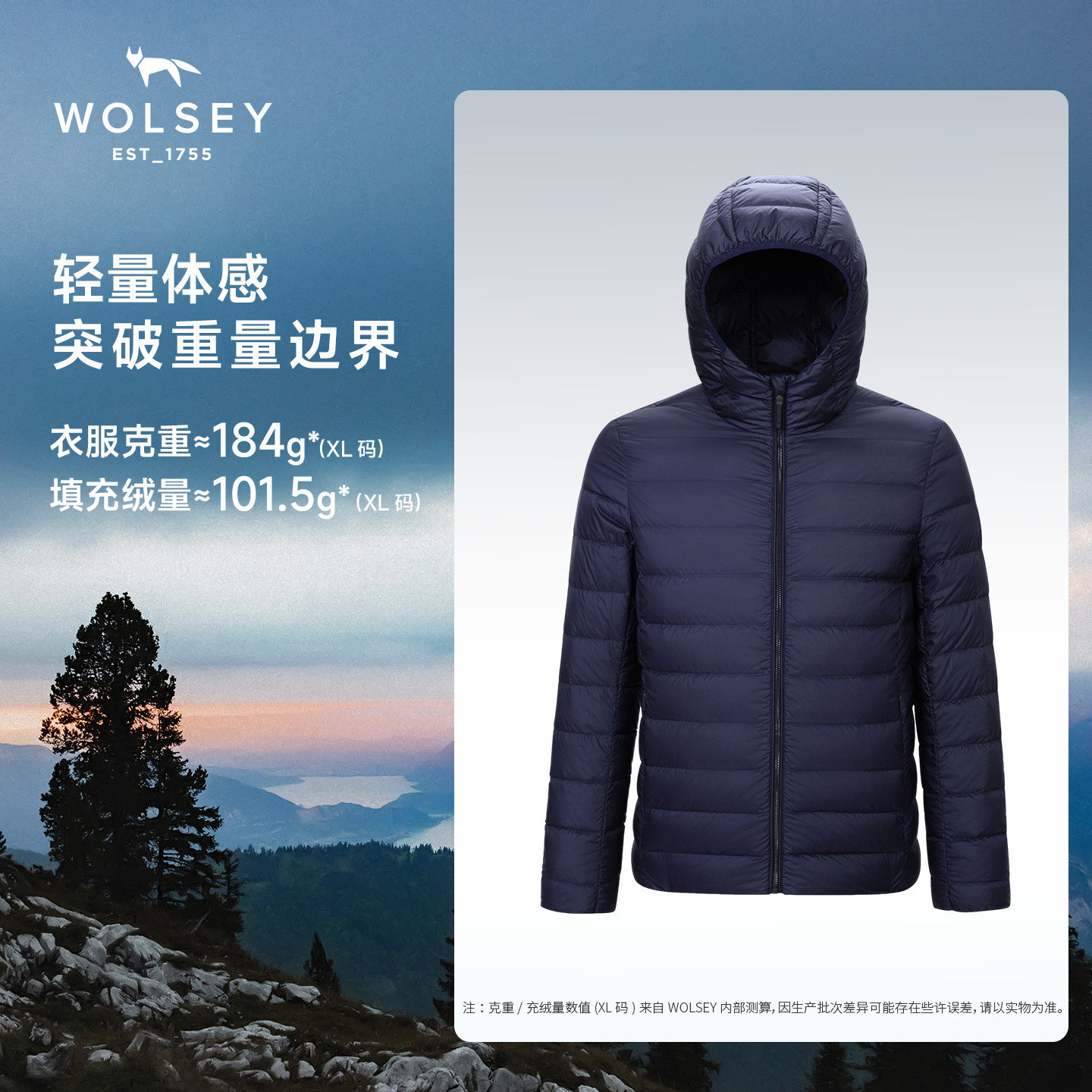 【店播连帽】Wolsey浮云轻薄羽绒服轻量保暖男女款外套750蓬通勤