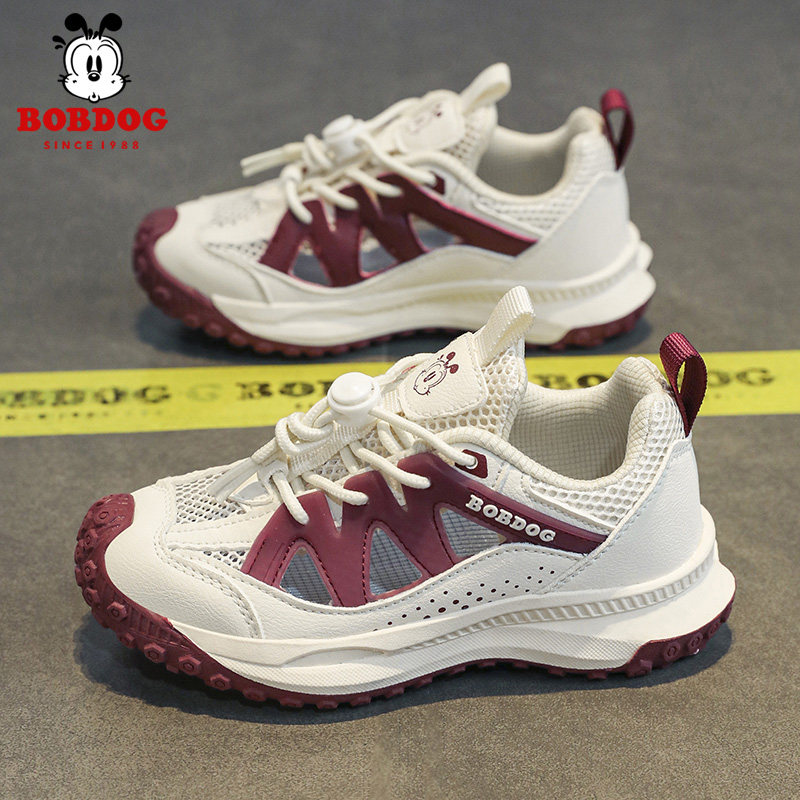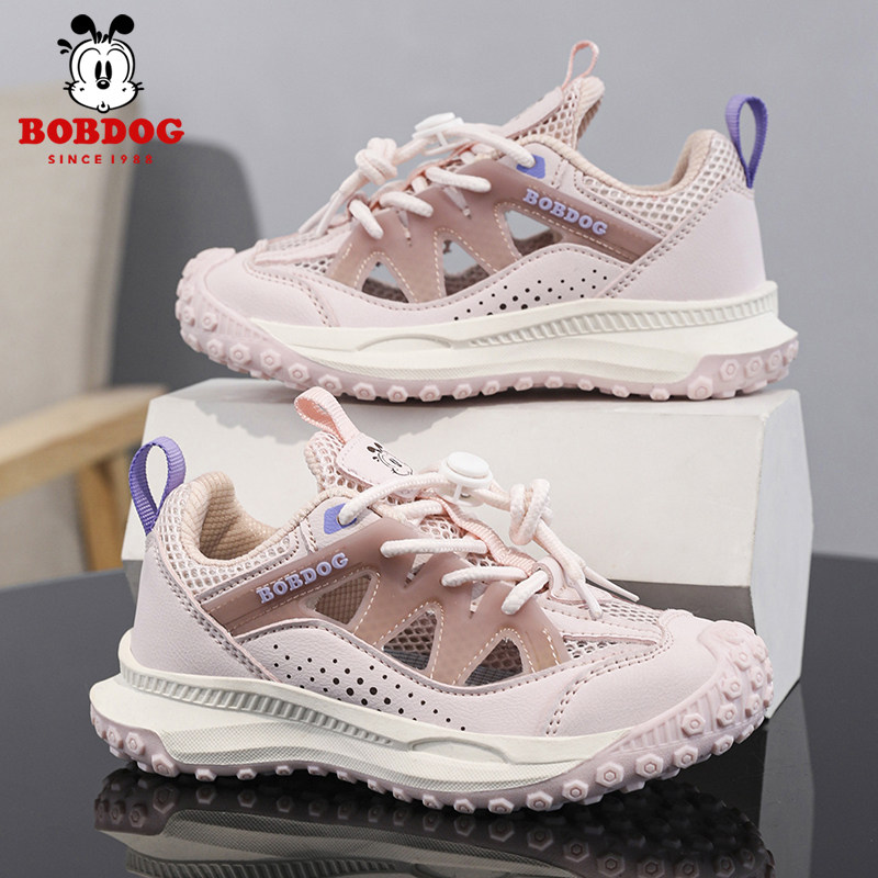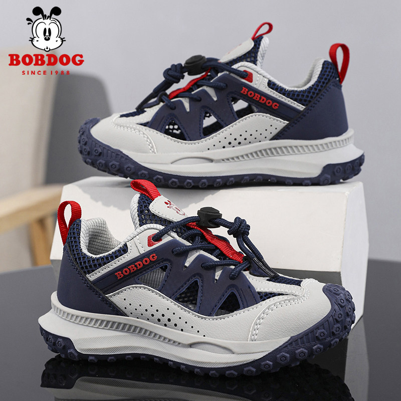 巴布豆男童运动凉鞋夏季新款网面透气中大童女童鞋儿童包头框子鞋
