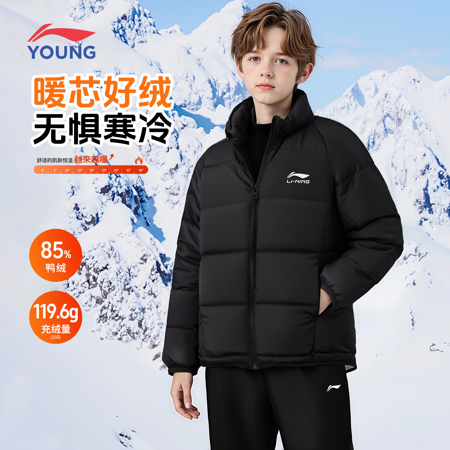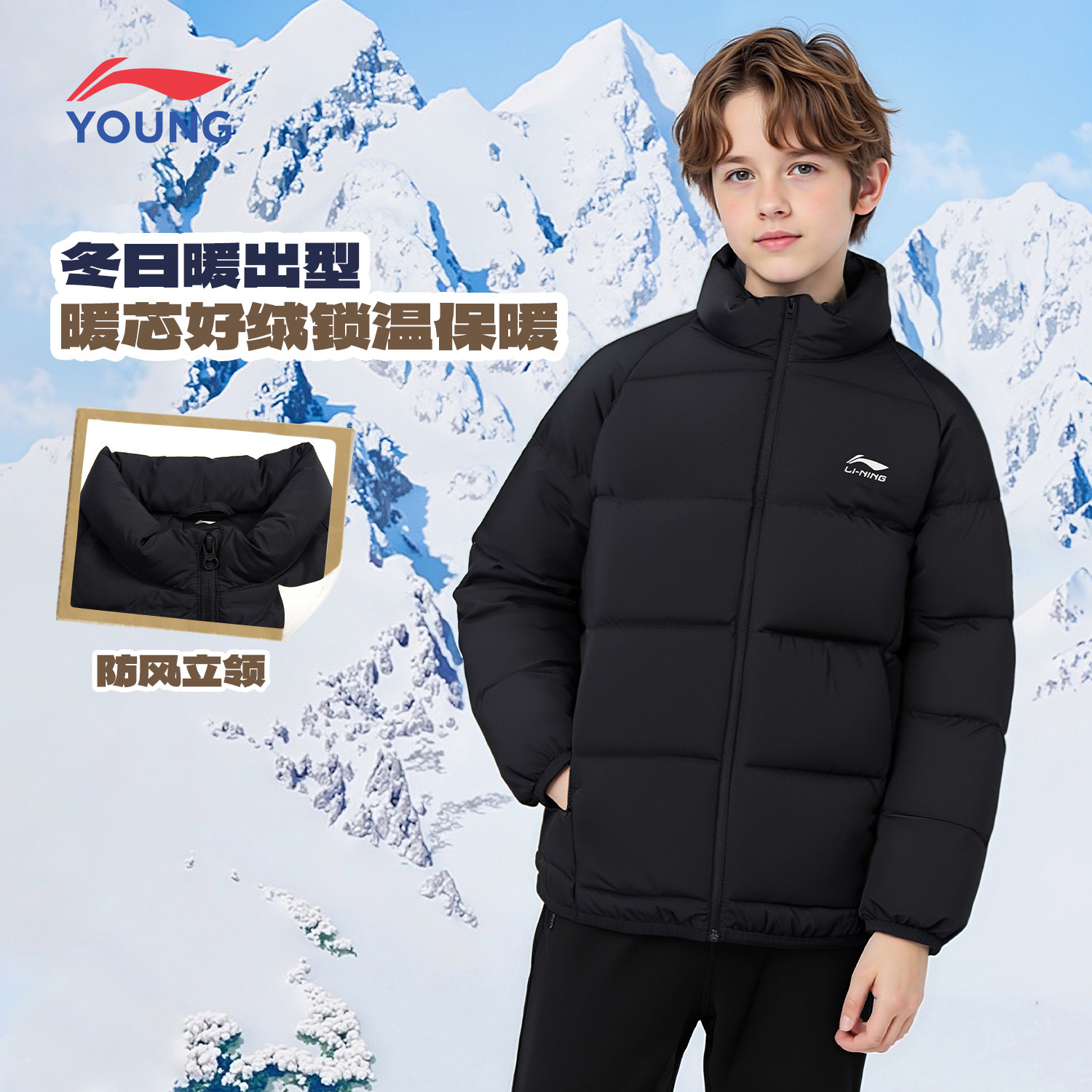 李宁羽绒服男童2026冬季新款男款儿童保暖青少年立领防风运动外套