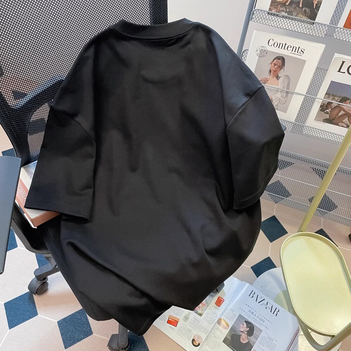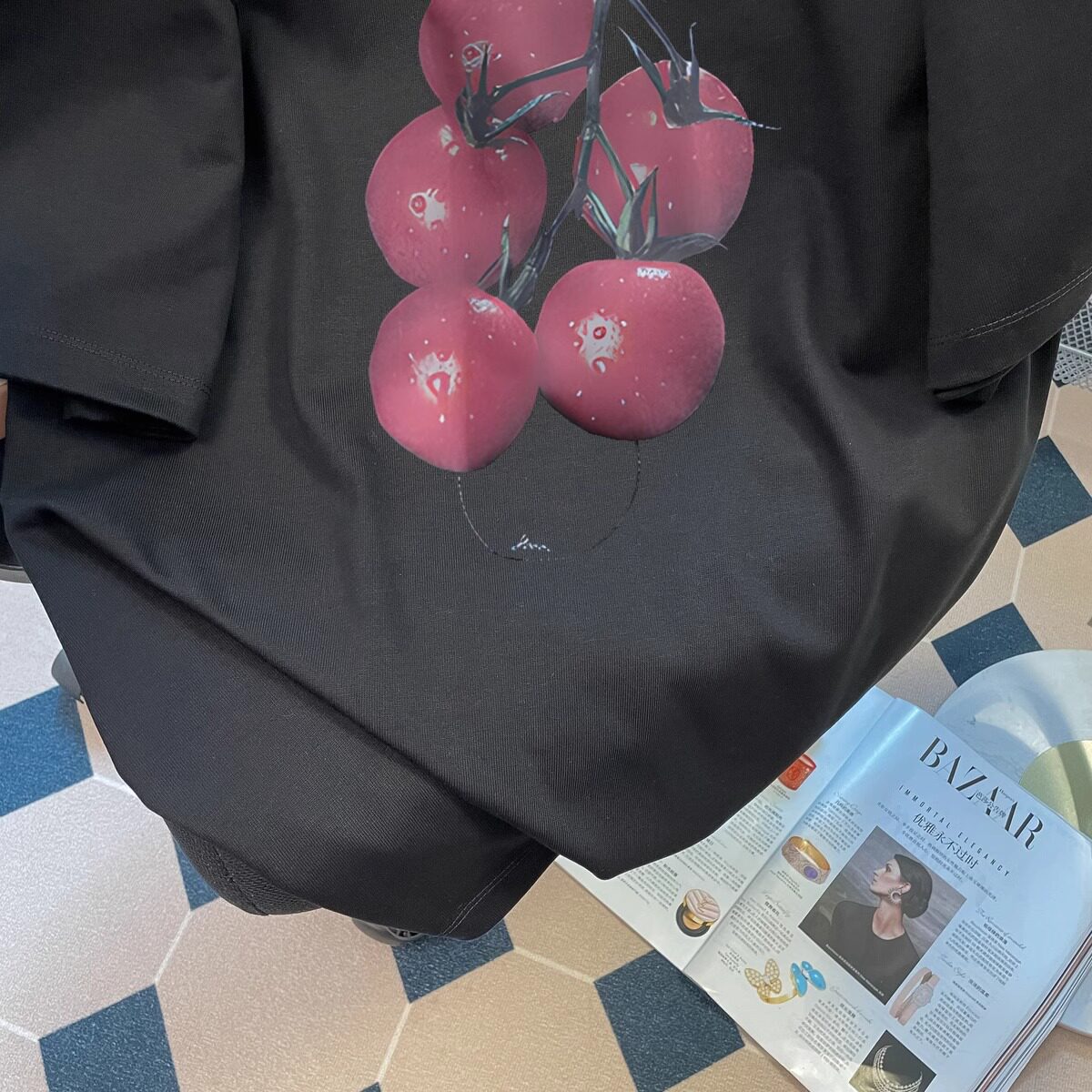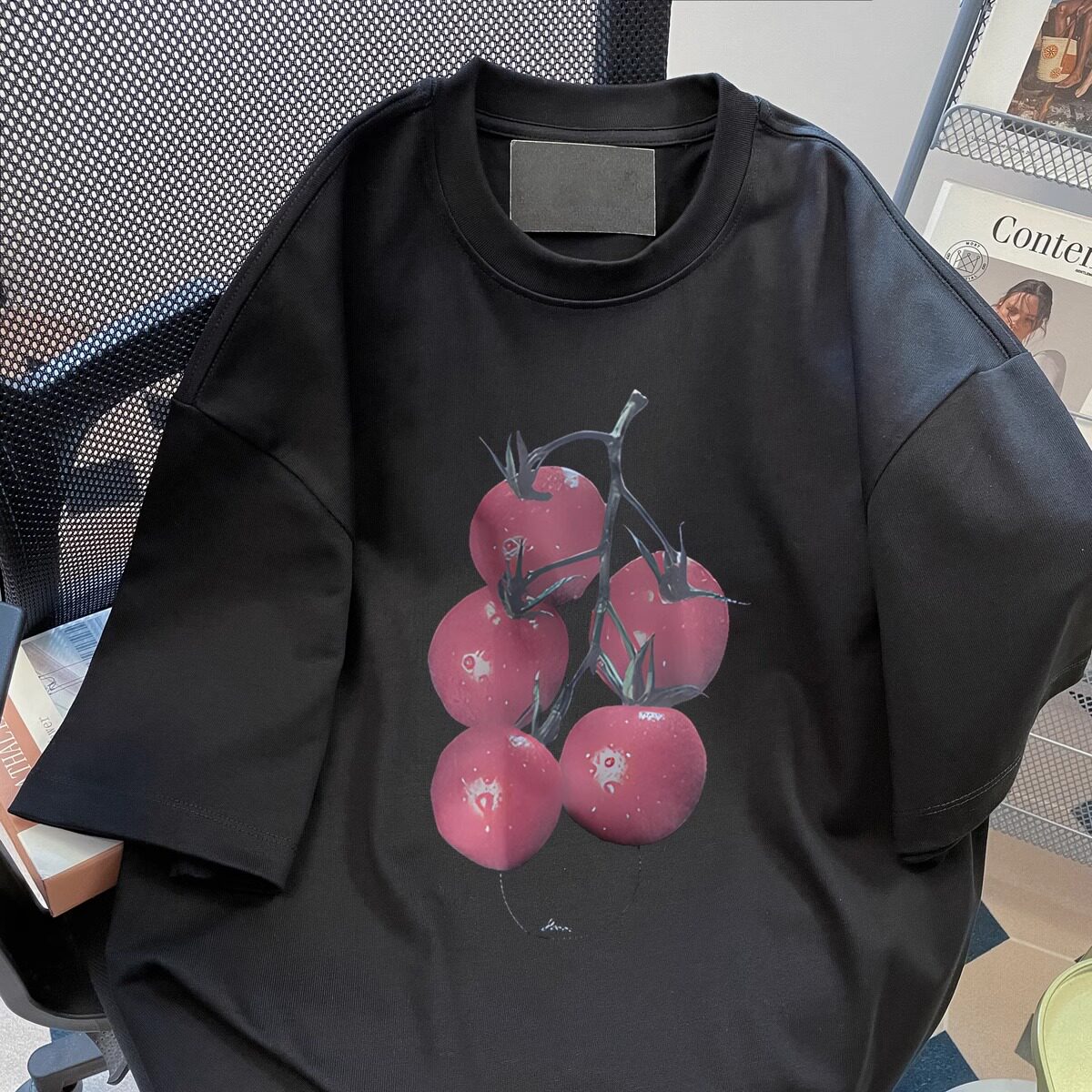 黑色美式设计感番茄印花短袖t恤女夏宽松女大童初中高中学生15岁
