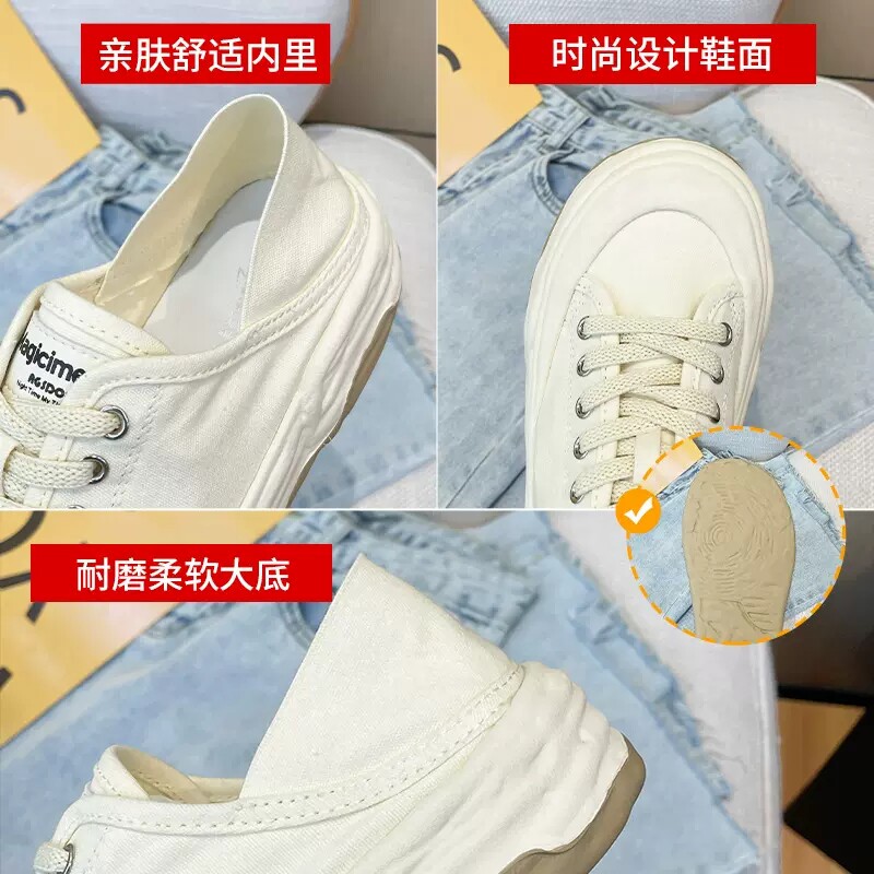奥古狮登帆布鞋女款2026新款春夏季大码显脚小软底透气休闲小白鞋